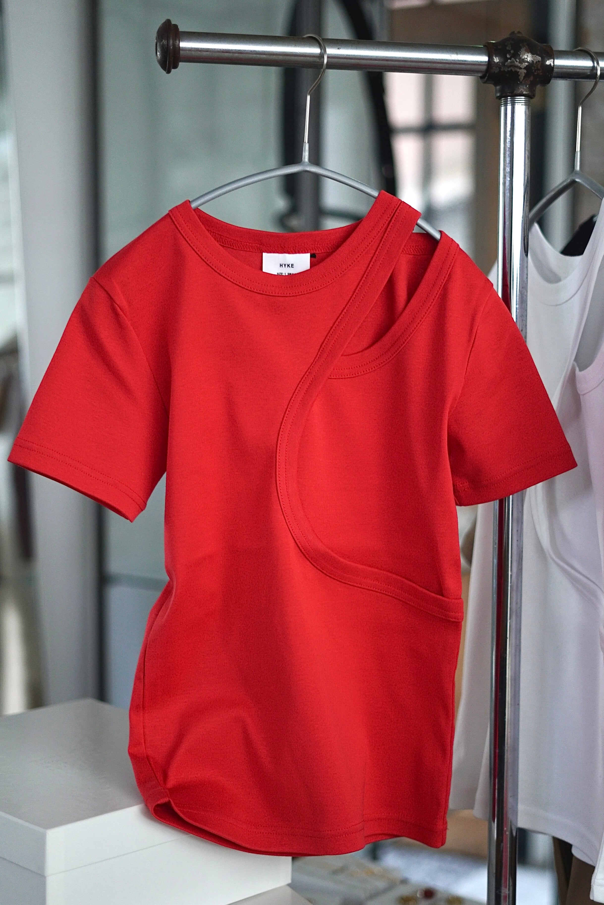 HYKE / LAYERED SHORT-SLEEVE TEE (BLACK, WHITE, BEIGE, RED)