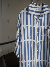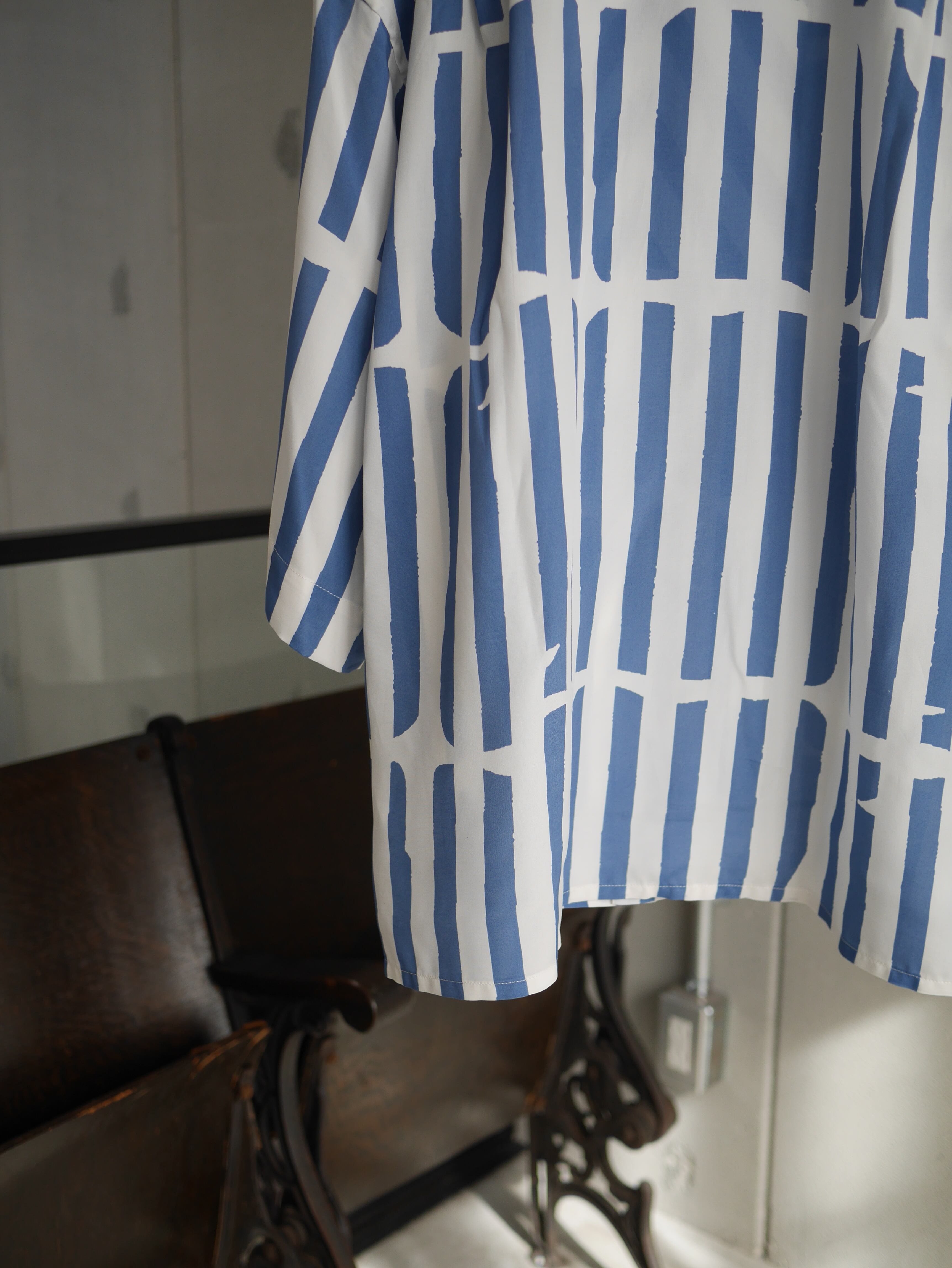 JOHN MASON SMITH / OPEN COLLAR SHIRT S/S ( WHITE BLACK / WHITE BLUE )