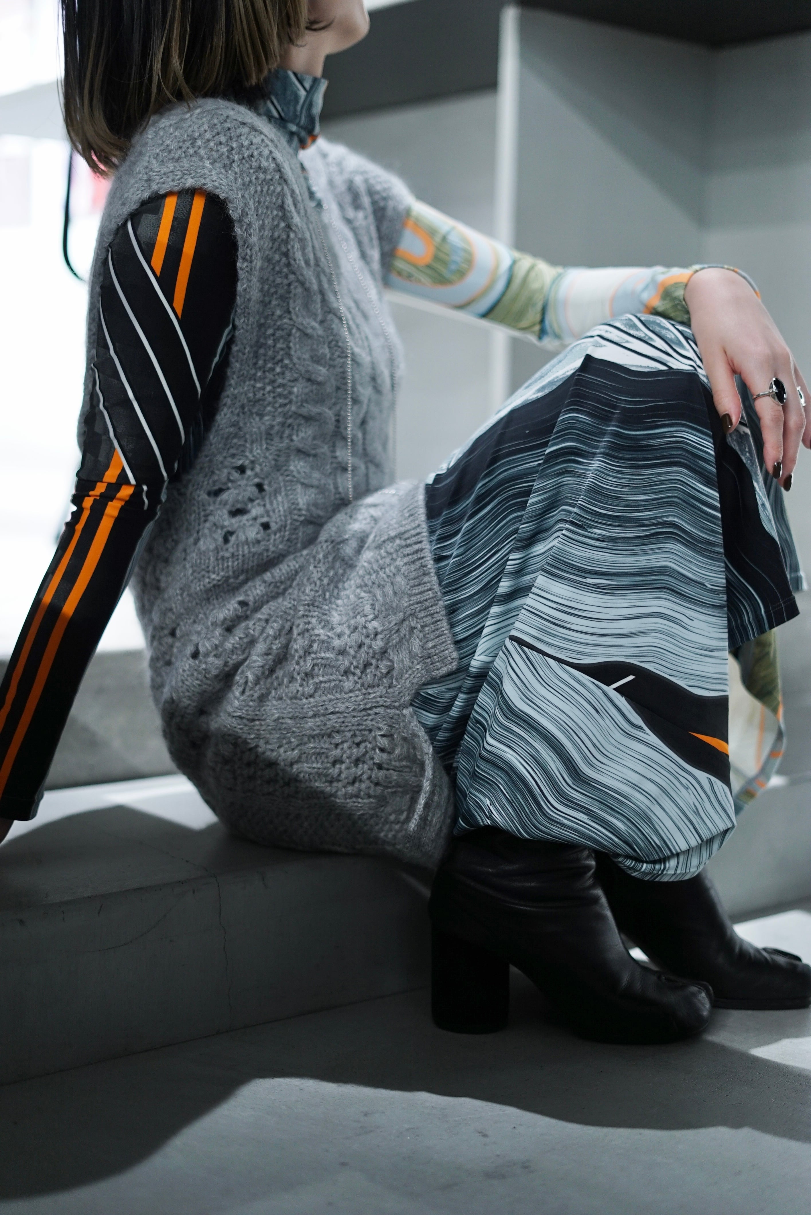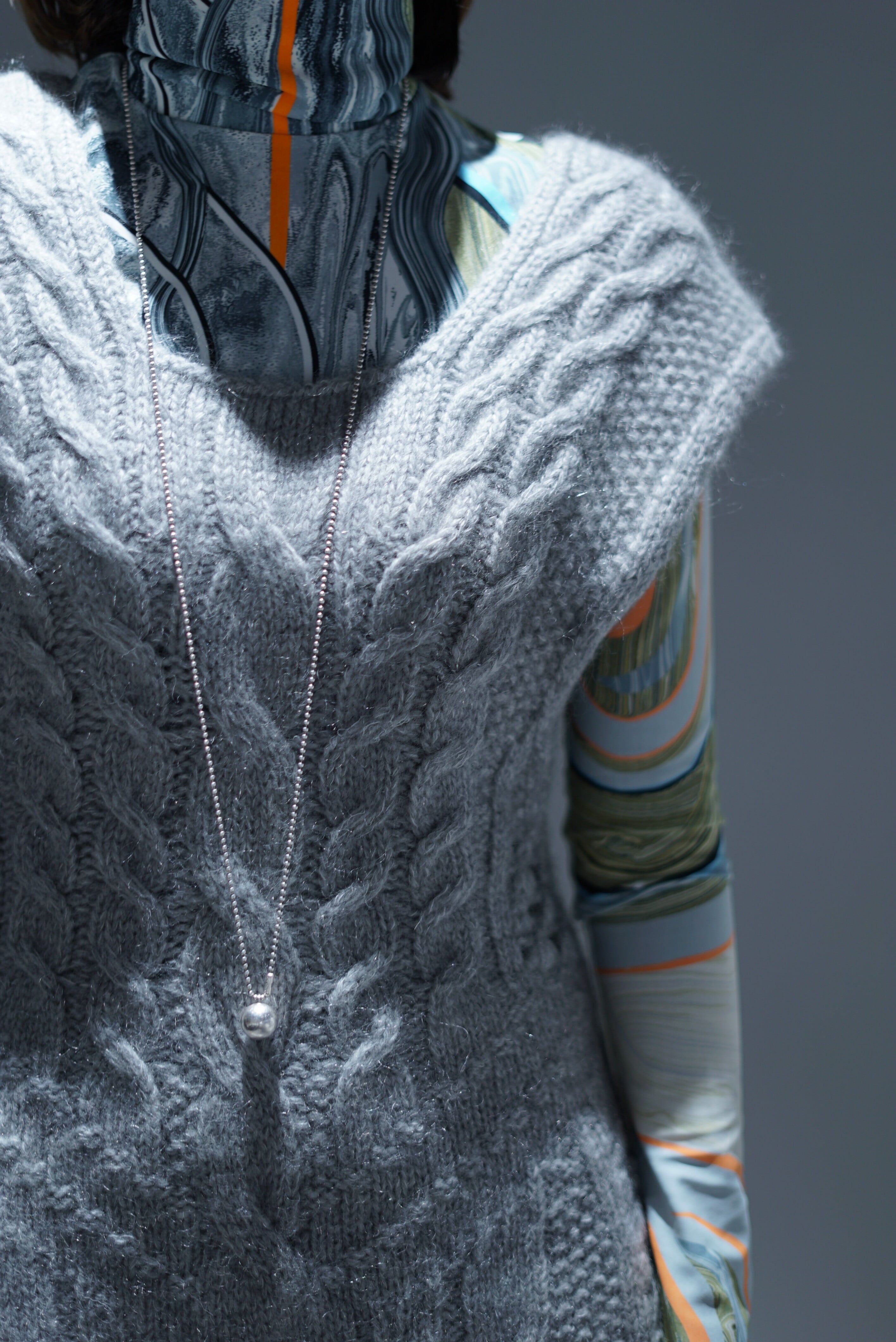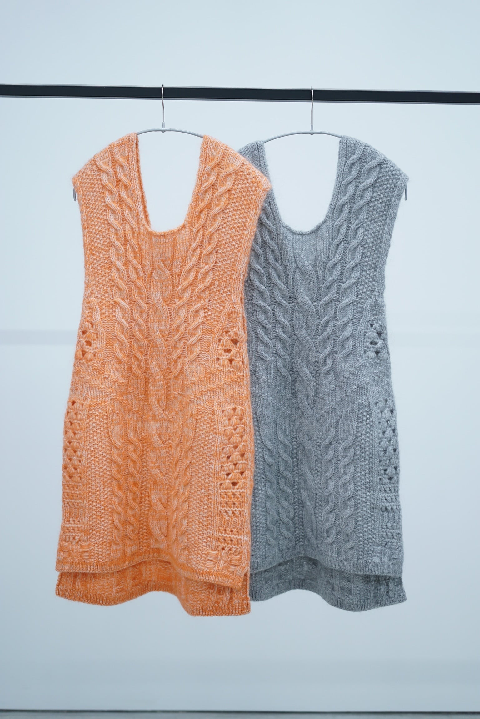 Mame Kurogouchi / Multi-Pattern Cable Sleeveless Knitted Vest (ORANGE/GREY)