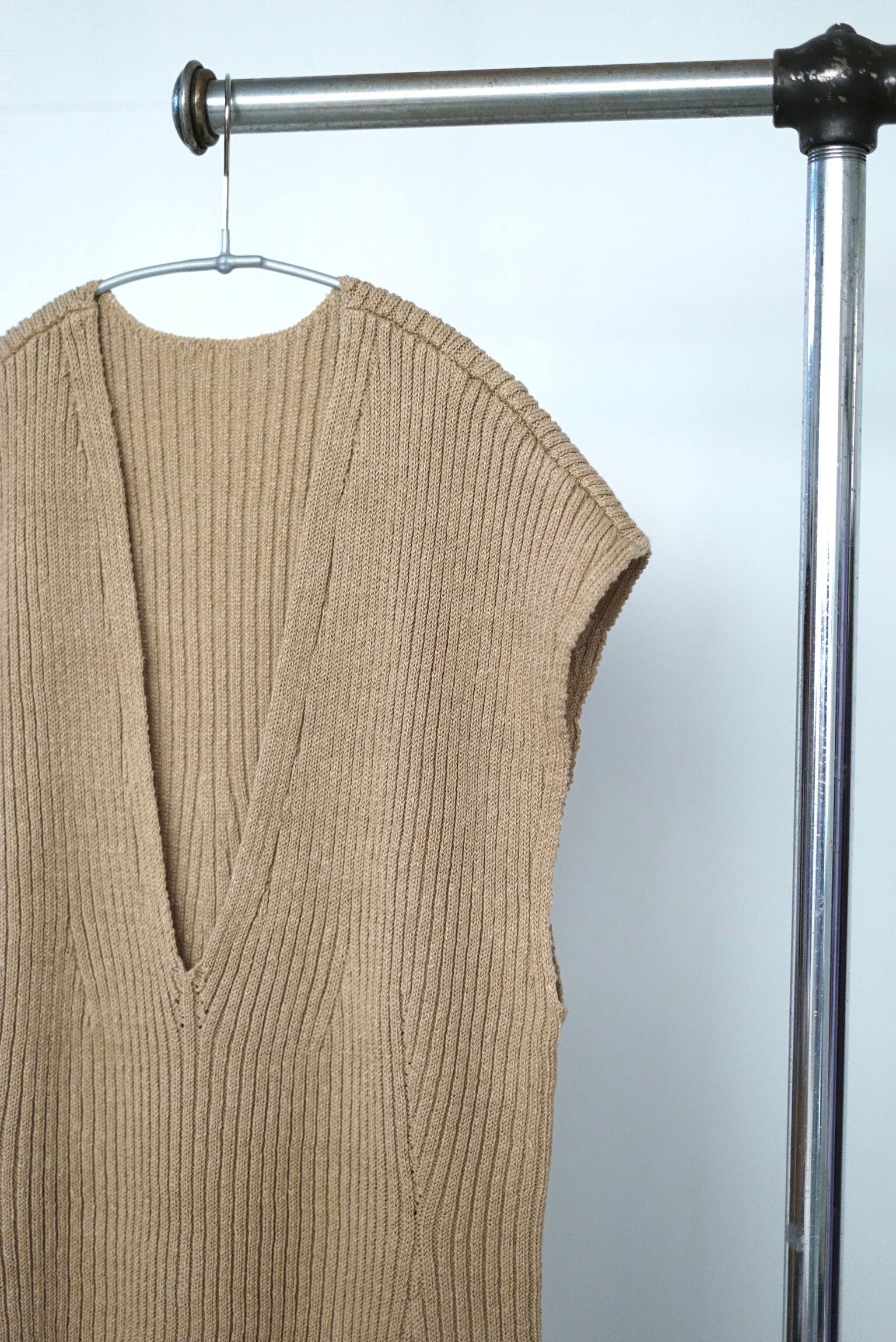 Mame Kurogouchi / Washable Linen Knitted Vest (BROWN,PURPLE)