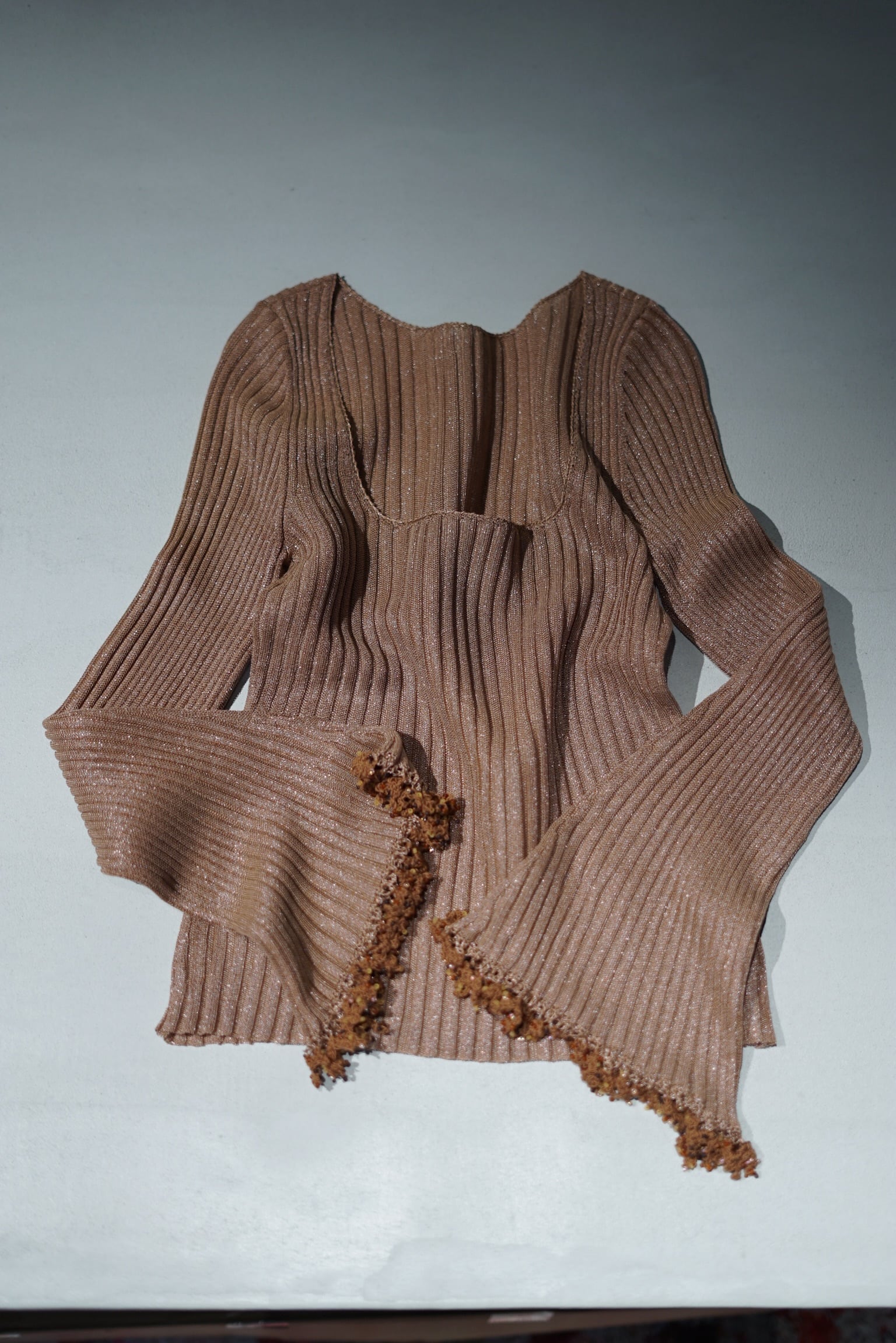 Mame Kurogouchi / Beaded Flared Sleeve Knit Top ( BROWN / PURPLE )