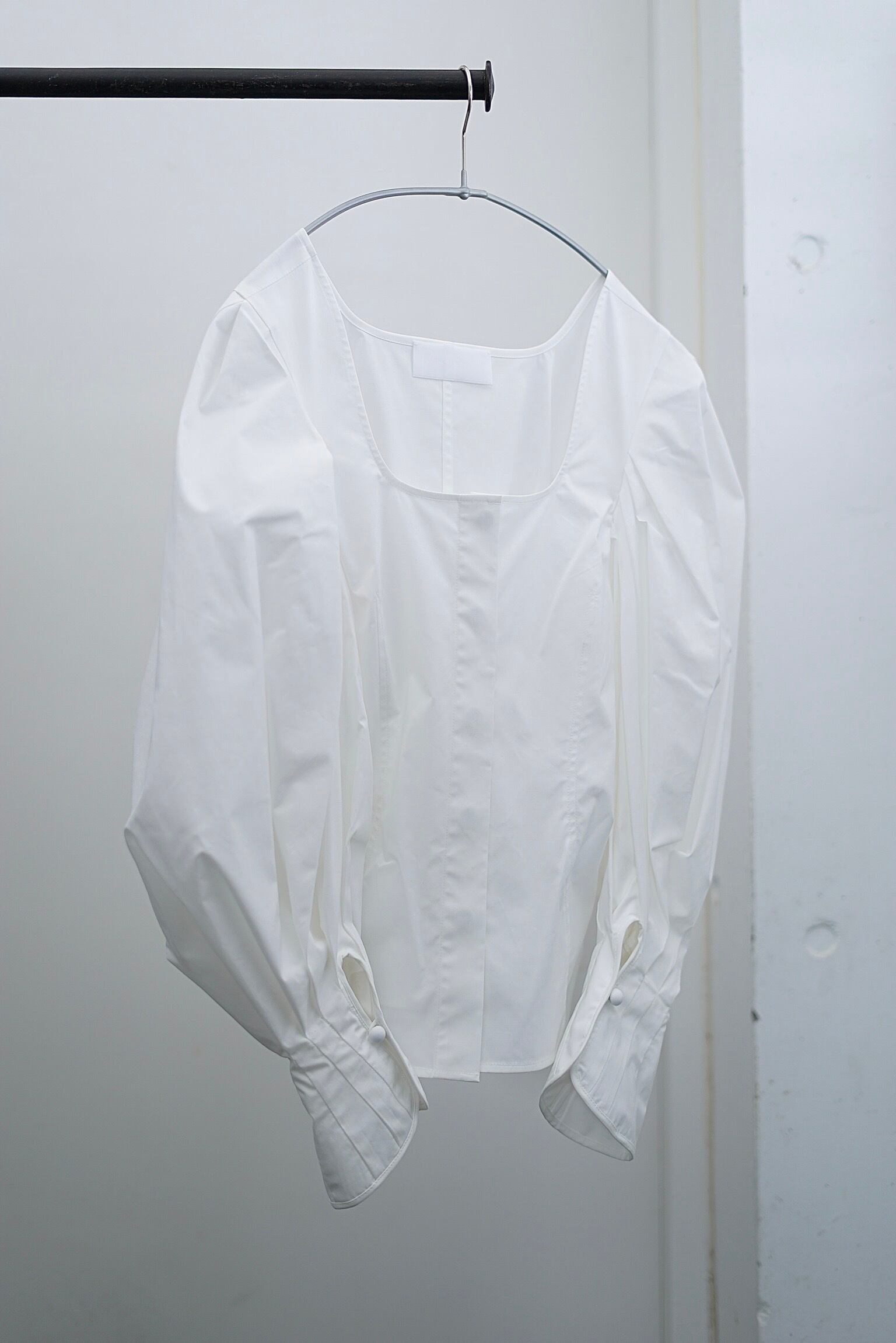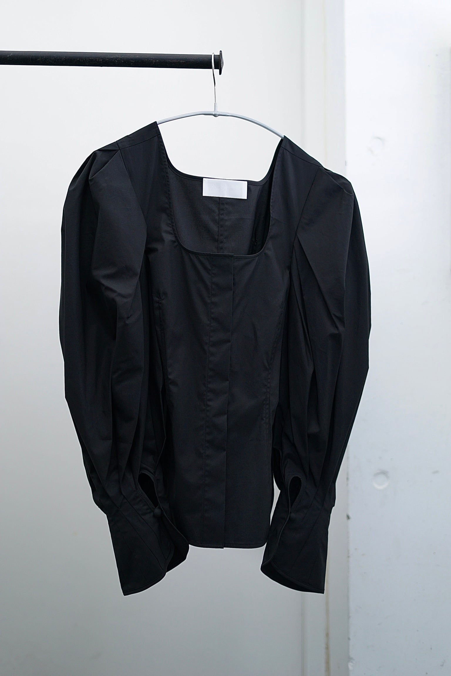 Mame Kurogouchi / Spuare Neck Puff Sleeve Shirt (black/white)