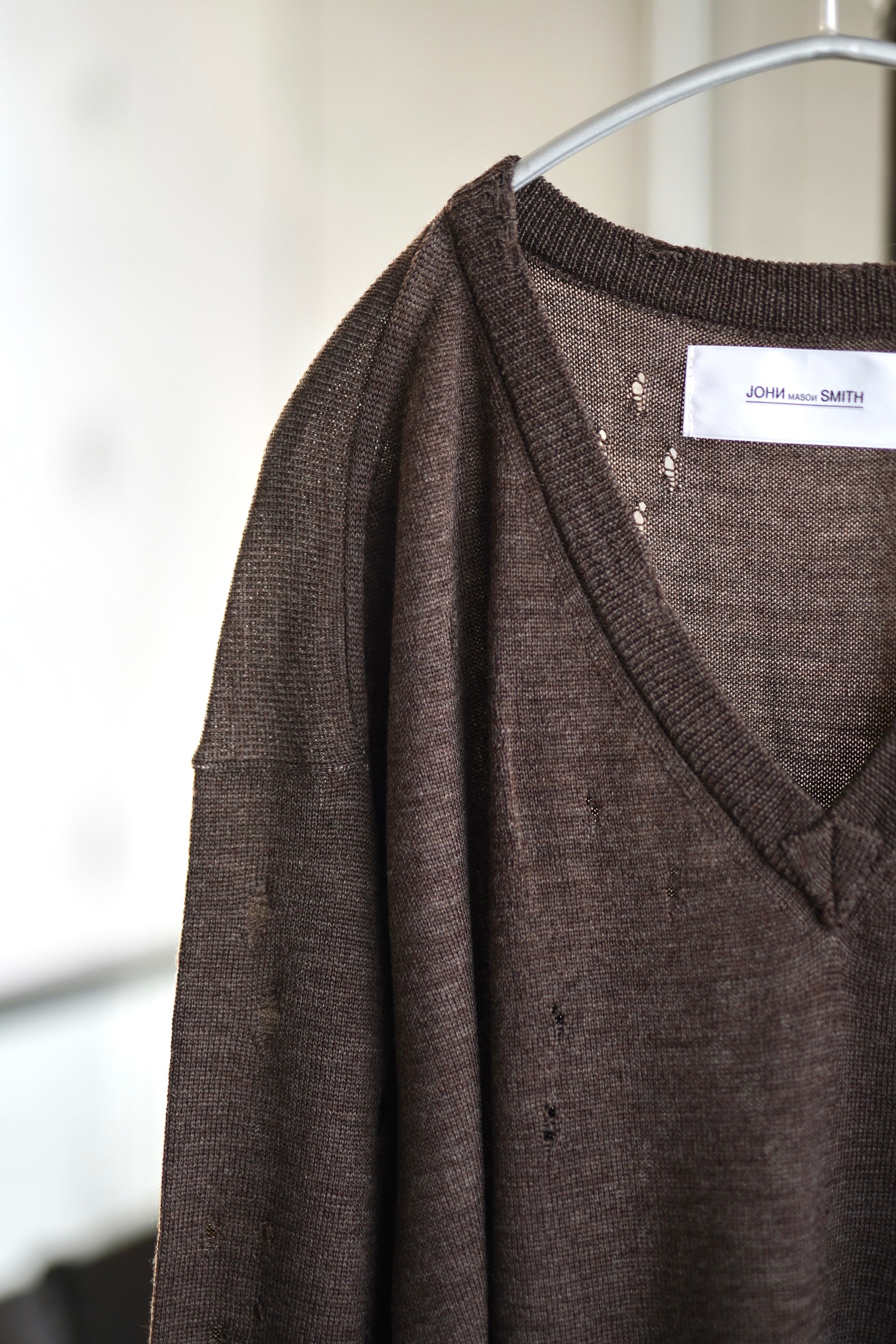 JOHN MASON SMITH / 12G DAMAGE V NECK KINT (CHARCOAL / BROWN / WHITE)