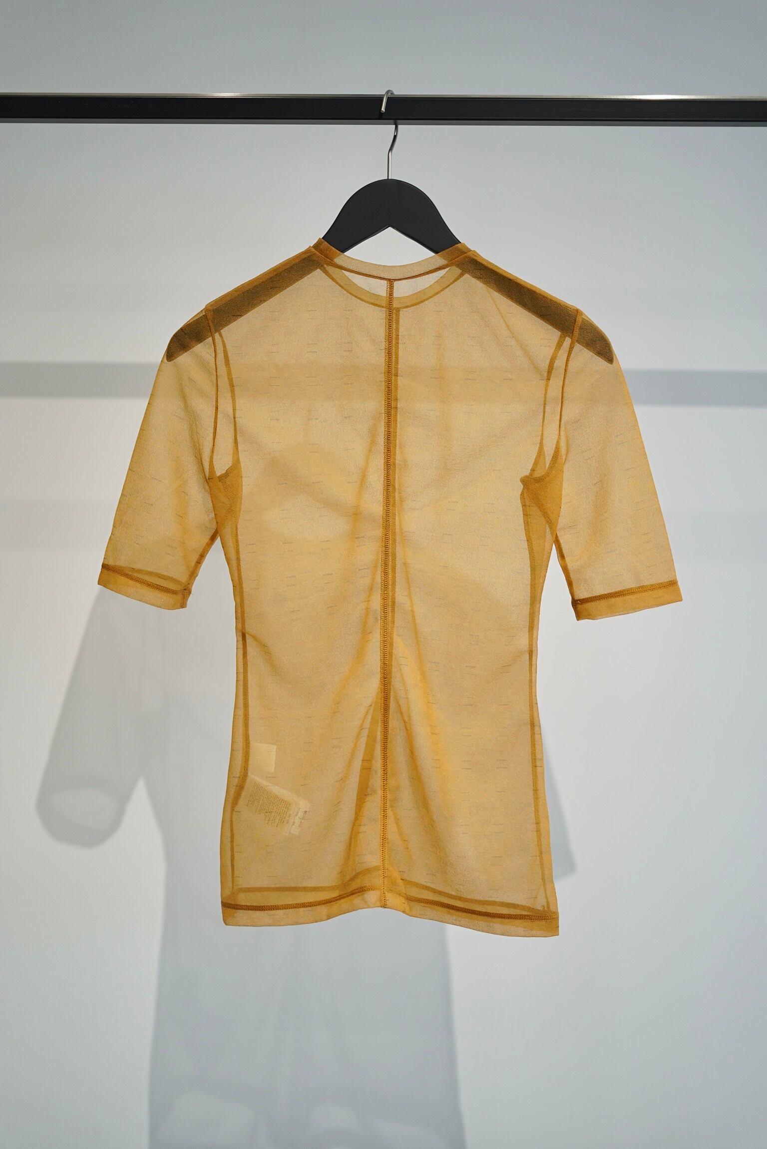 Mame Kurogouchi / Marble Printed Plaid Sheer Crew Neck Top ( BROWN , MINT GREEN )