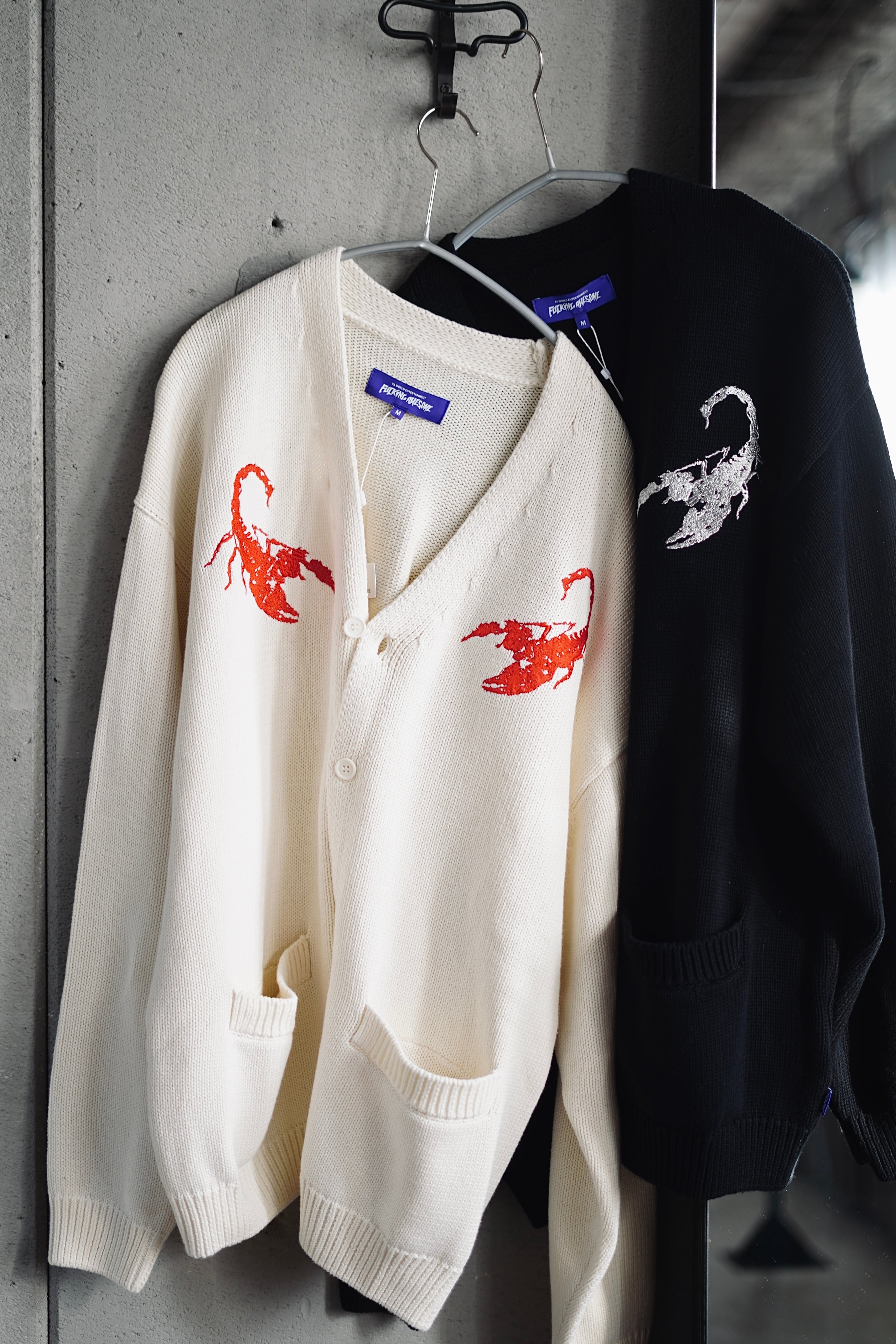 FUCKINGAWESOME / EMBROIDERED SCORPION CARDIGAN (Black , Cream)