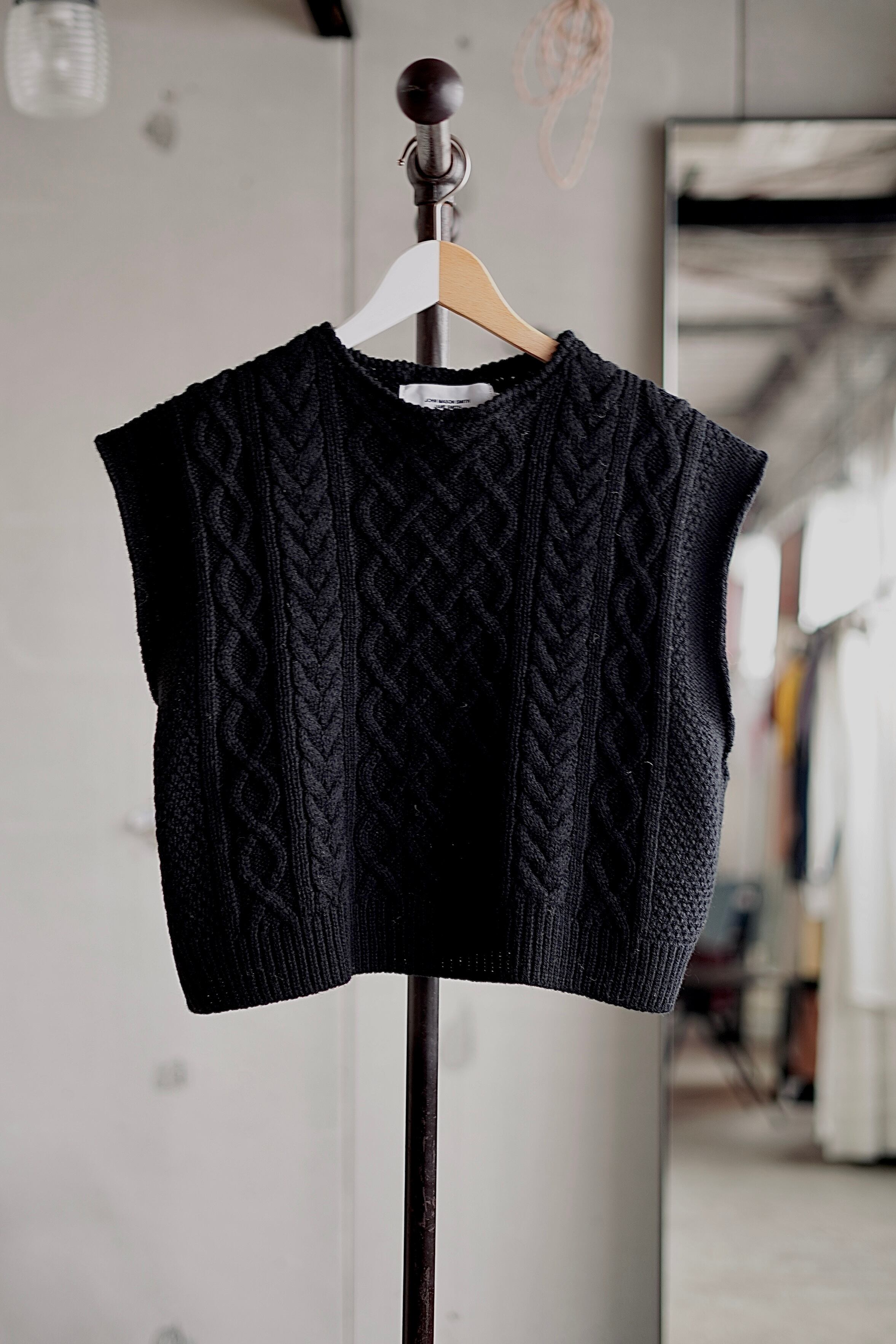 JOHN MASON SMITH/JANE SMITH / 5G ARAN VEST (CREAM , BLACK)