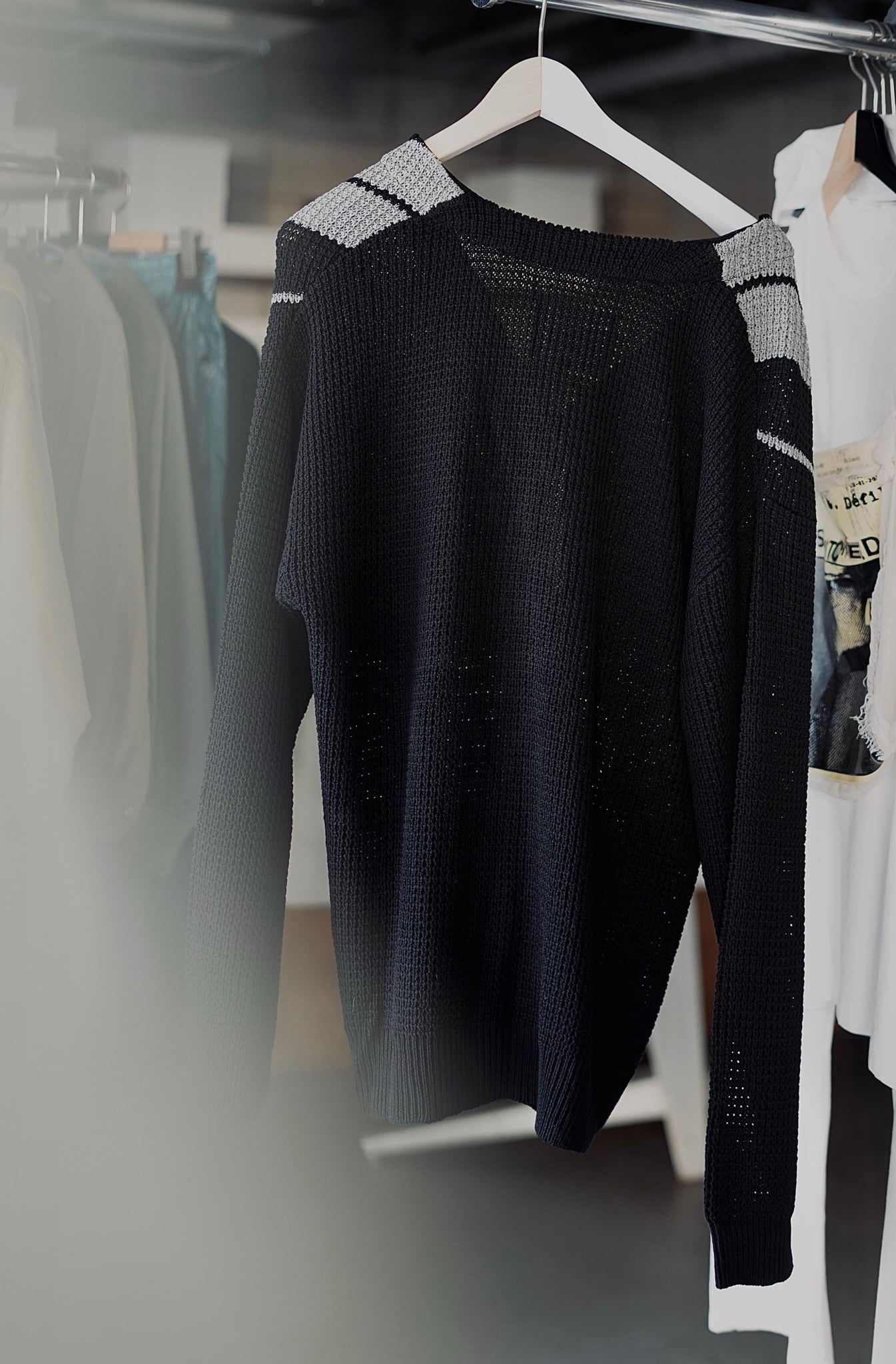 FUCKINGAWESOME / LIGHTWEIGHT CARDIGAN SCHOOL STRIPED SWEATER (Black)