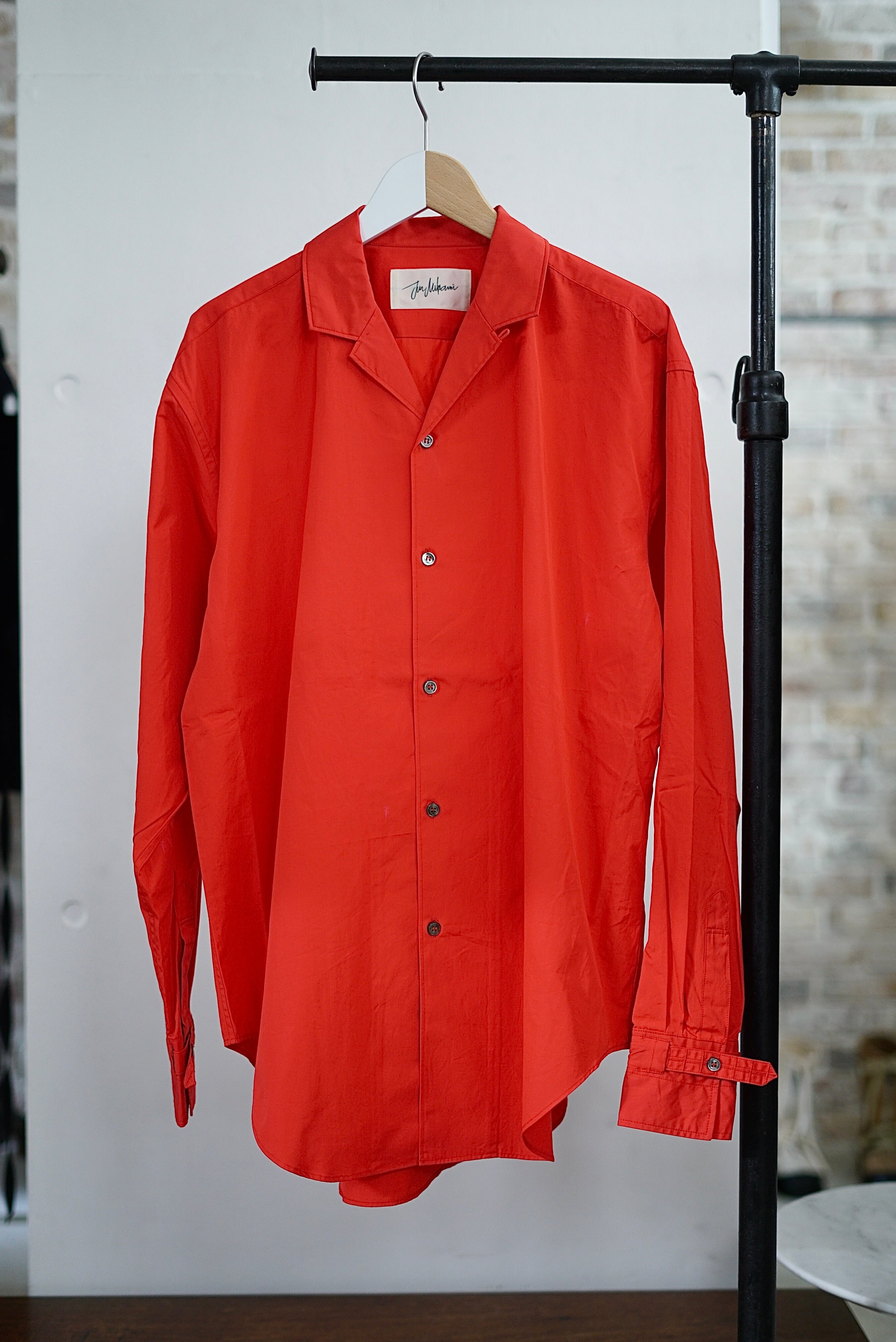 JUN MIKAMI / ORGブロードオープンカラーシャツ( red / dark brown )