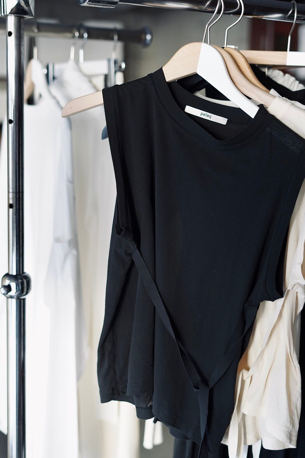 pelleq / sheer back open sleeveless T (white , custard , black)