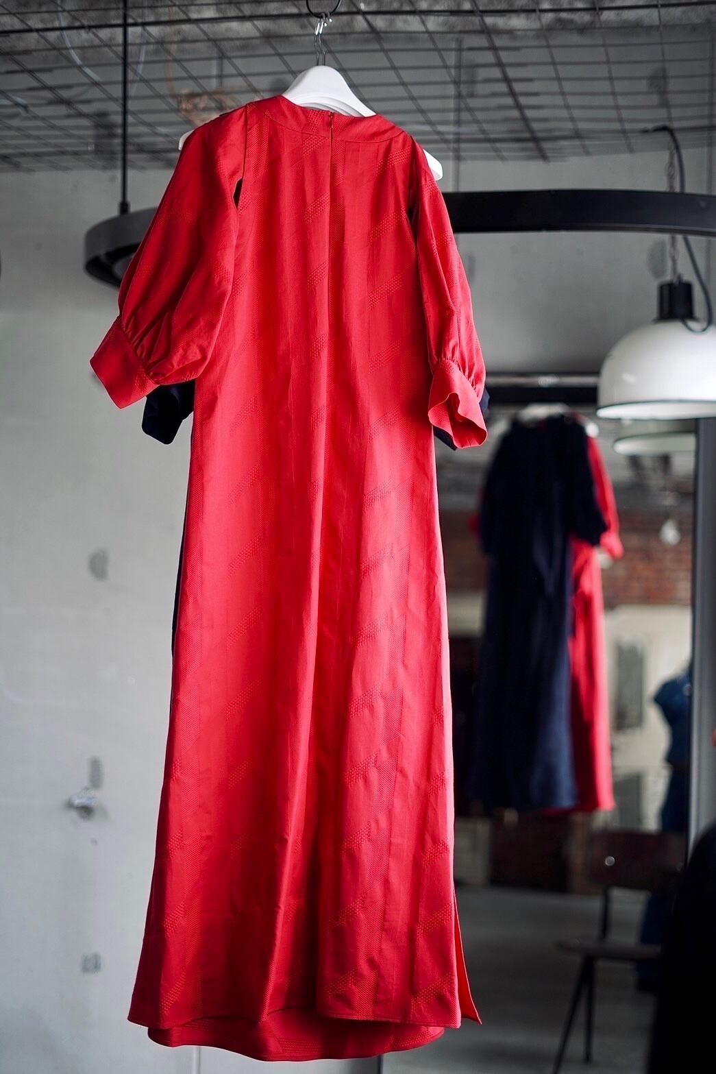 pelleq / jacquard open sleeve dress (Red , Navy)