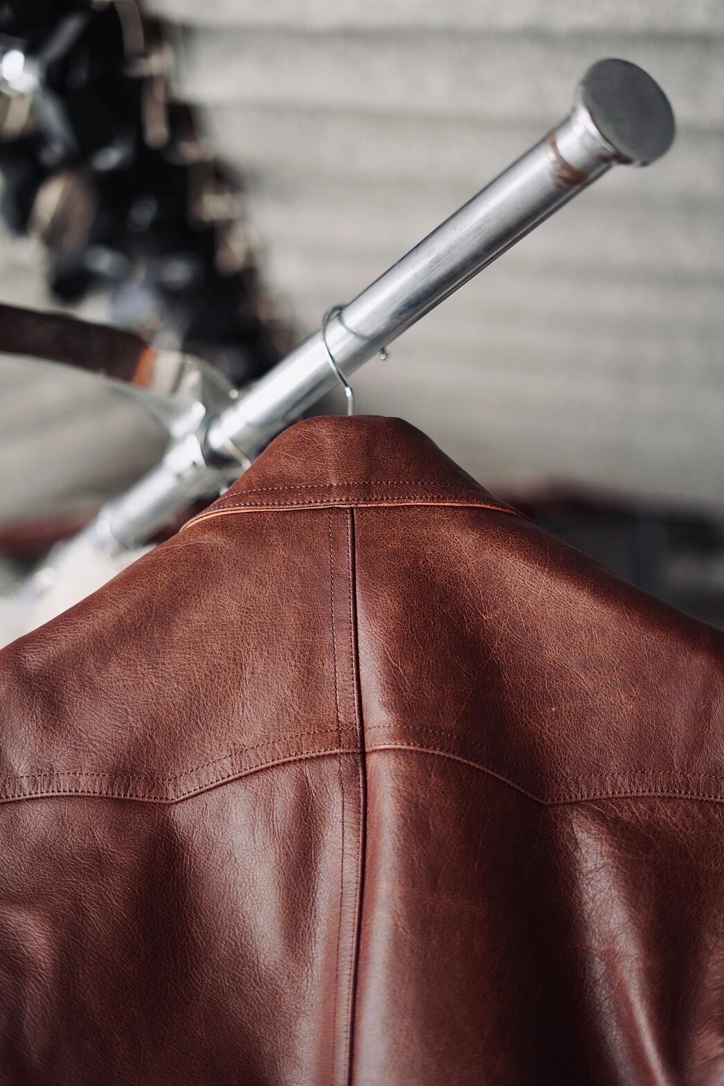 FUMIKA_UCHIDA / LEATHER SLEEVELESS DOUBLE RIDERS JACKET (BROWN)