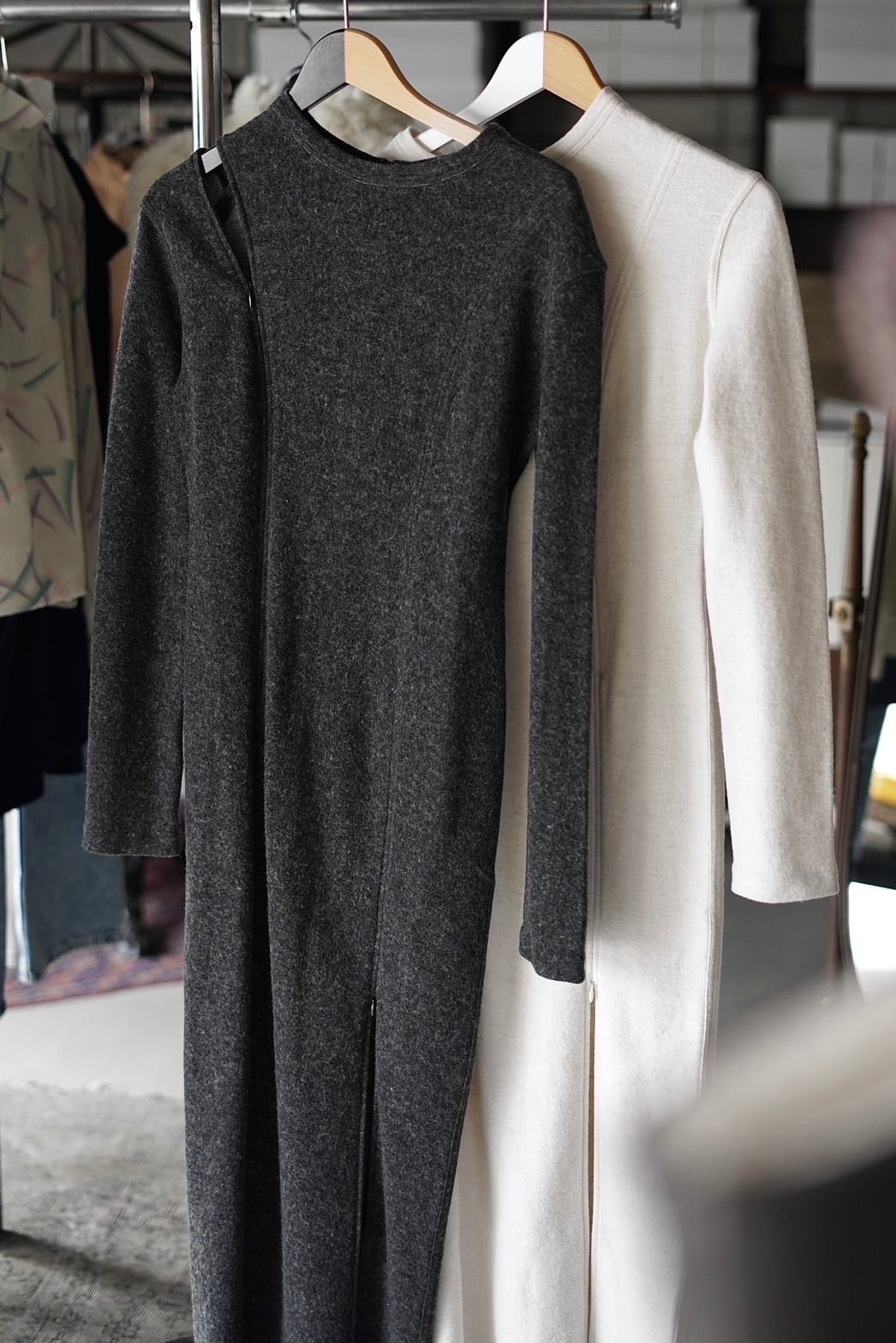 FUMIKA_UCHIDA / JERSEY CREW-NECK DRESS (COCOON , IVORYBLACK)