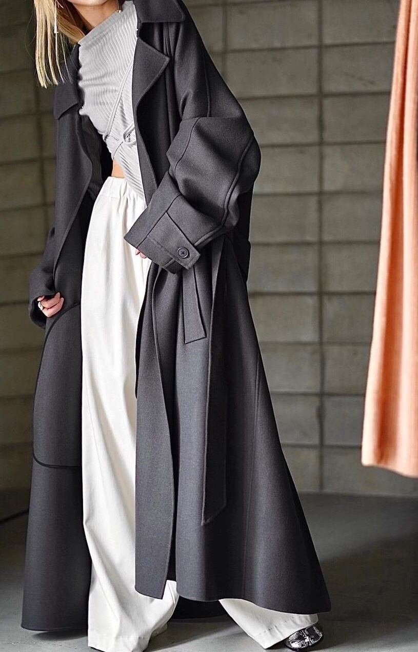 FUMIKA_UCHIDA / STRETCH W-FACE DOUBLE BREASTED LONG COAT (EGG , ASPHALT)