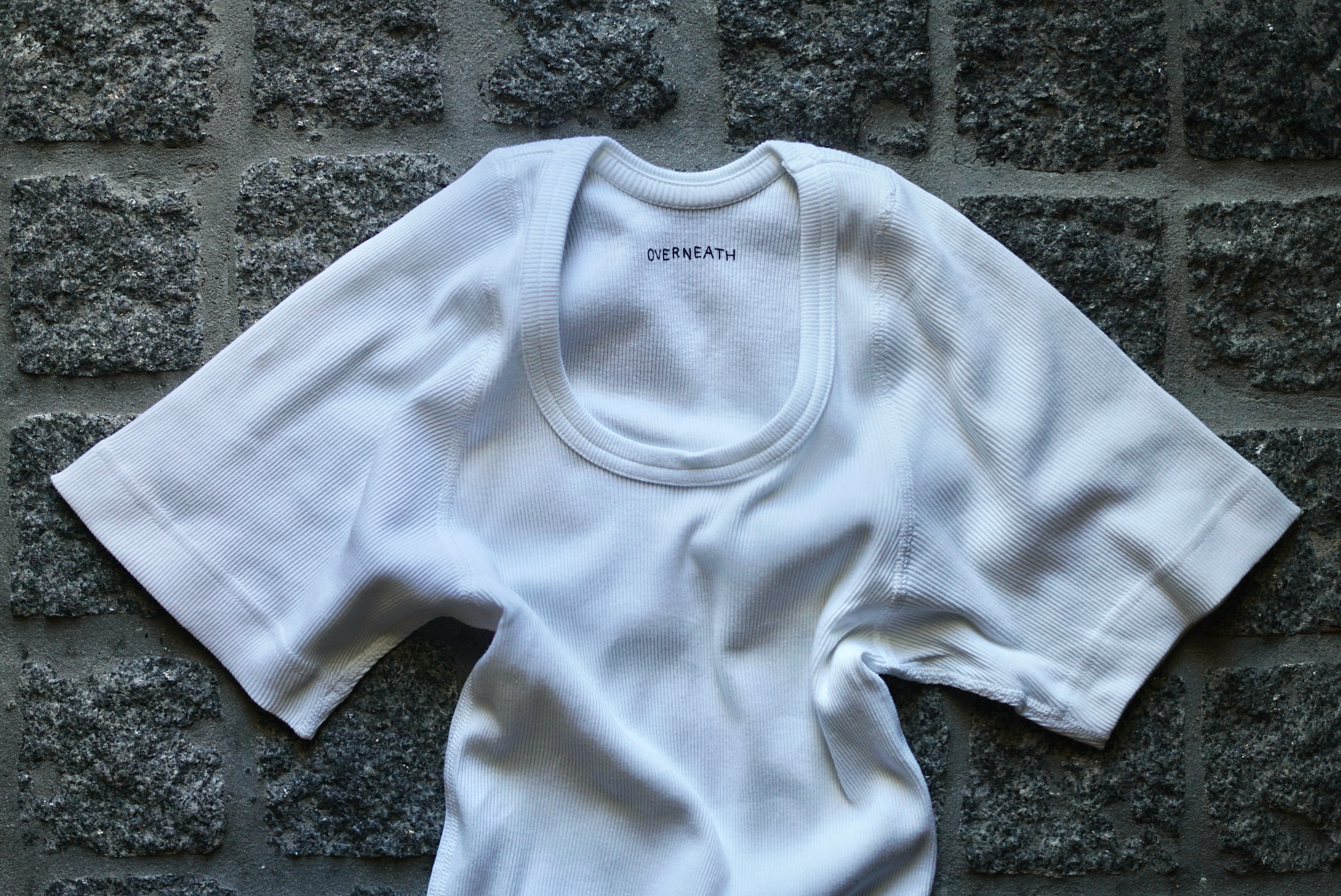 OVERNEATH / Rib Tee 027 ( White / Navy / Plum )