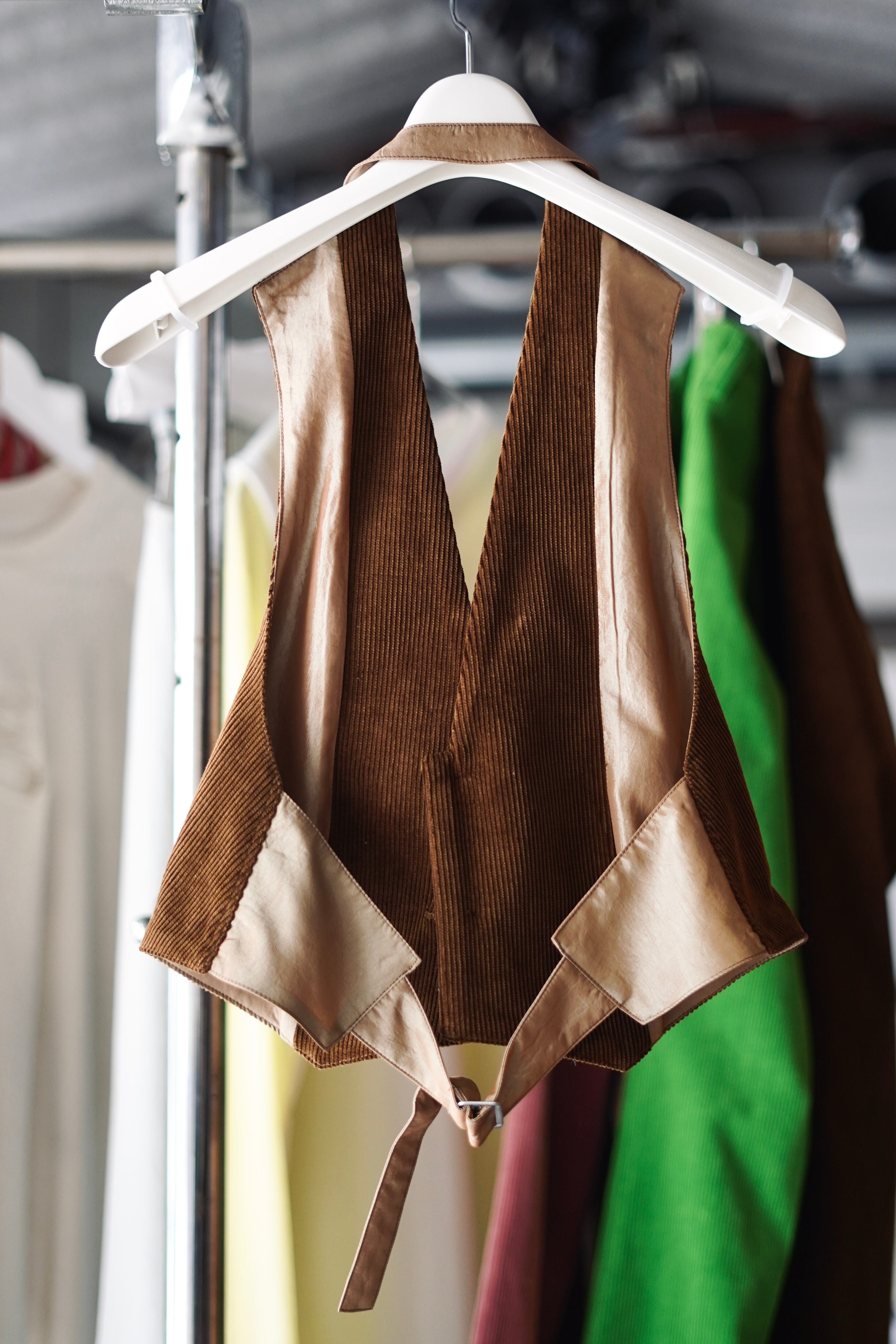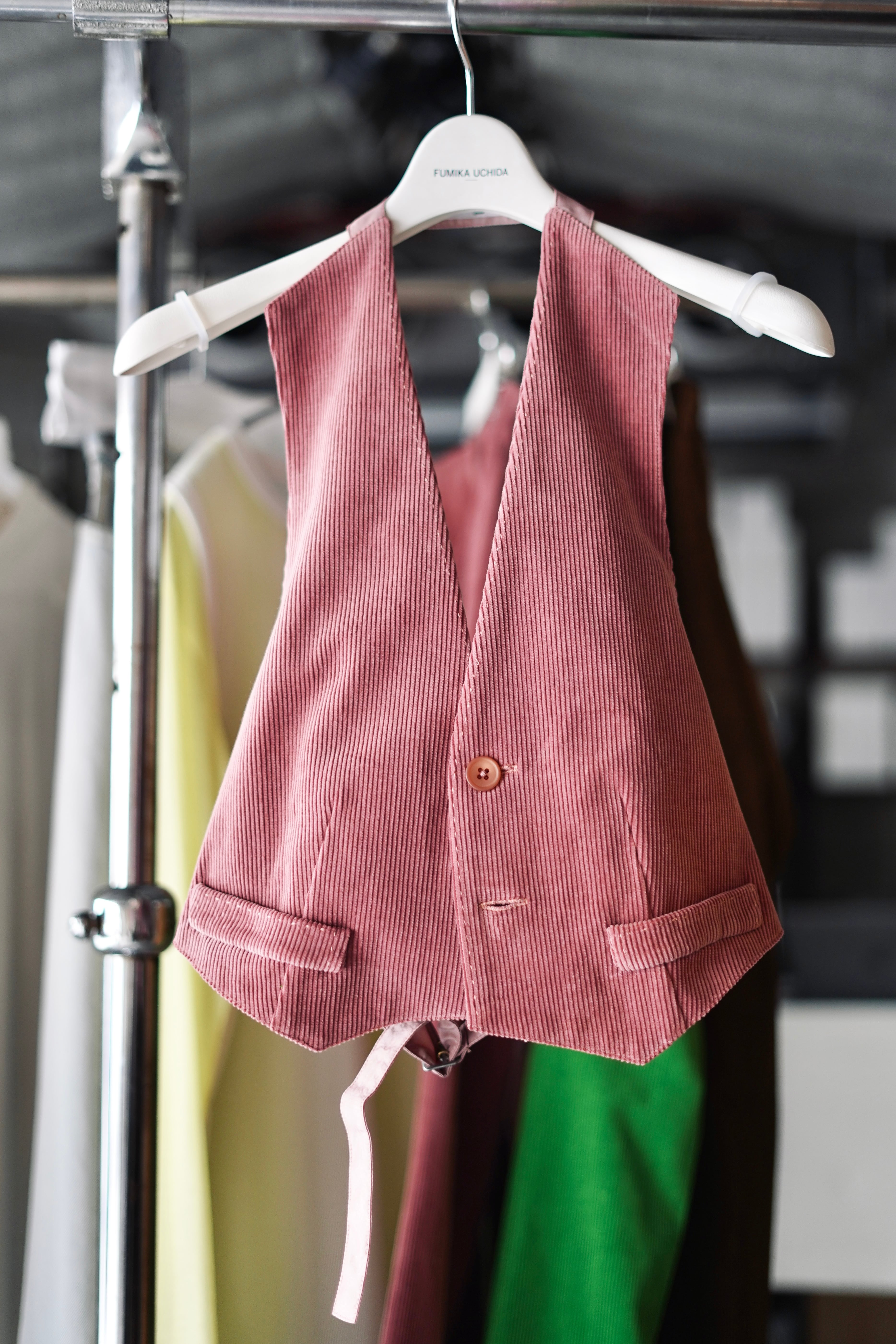 FUMIKA_UCHIDA / CORDUROY OPEN BACK WAISTCOAT (PINK , GREEN , BROWN)