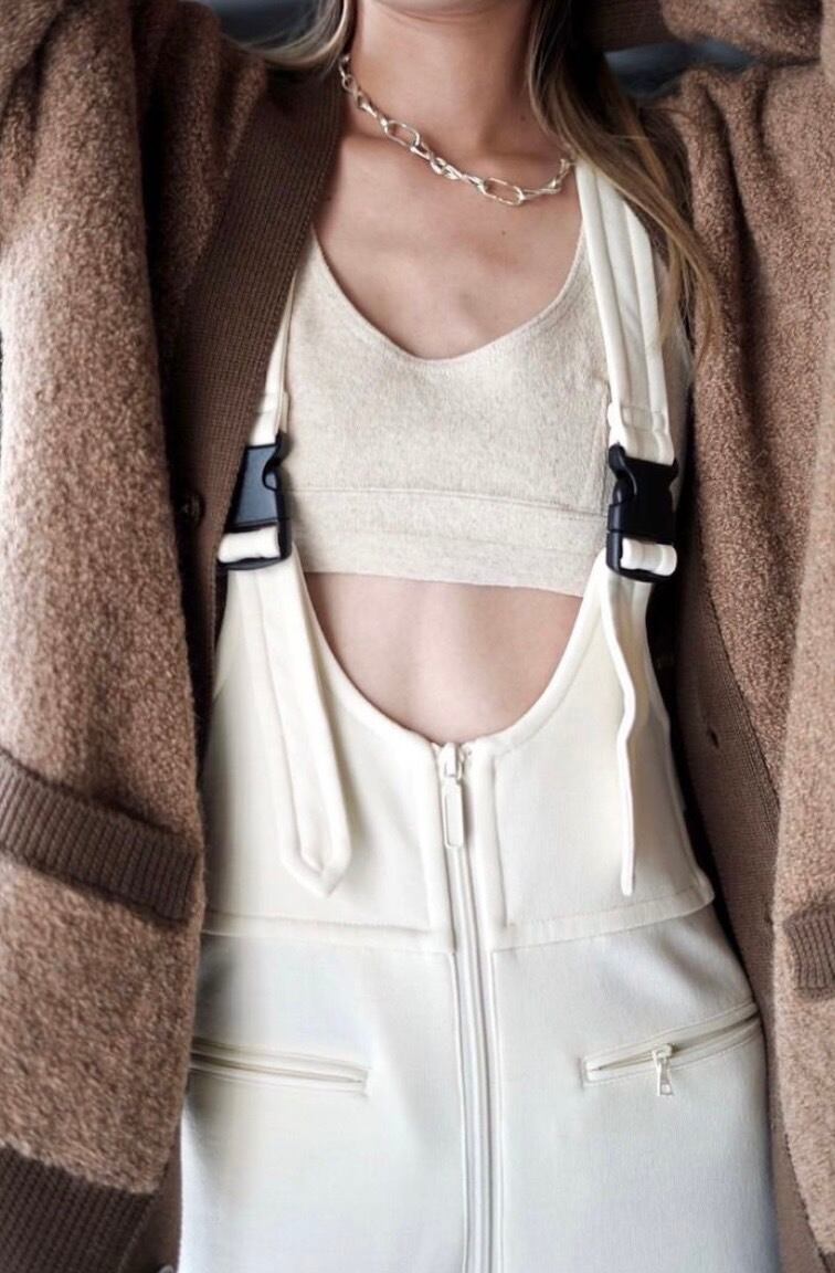 FUMIKA_UCHIDA / FLARED HEM JERSEY SALOPETTES (IVORY)