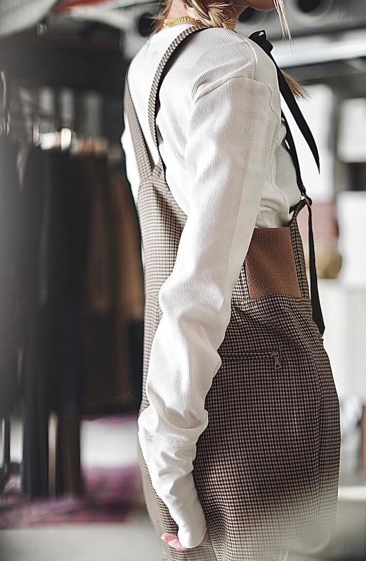 FUMIKA_UCHIDA / HOUNDSTOOTH PLEATED HEM SALOPETTES (HOUNDSTOOTH)