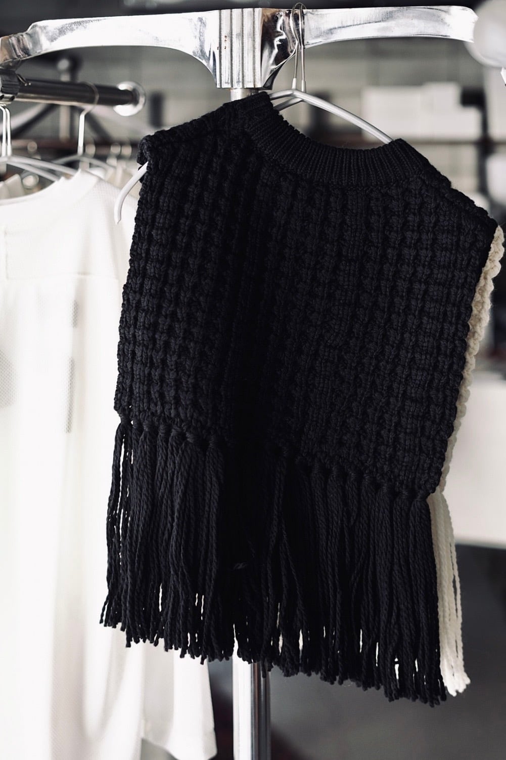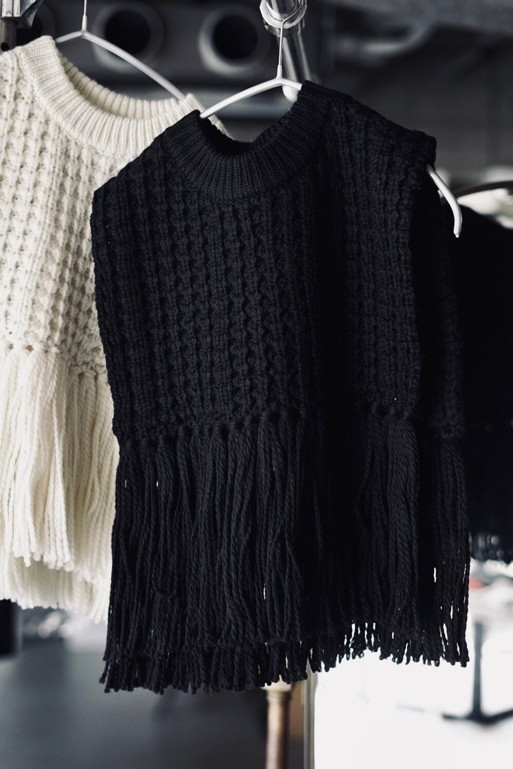 Item name / WAFFLE-KNIT SWEATER TOP WITH FRINGE