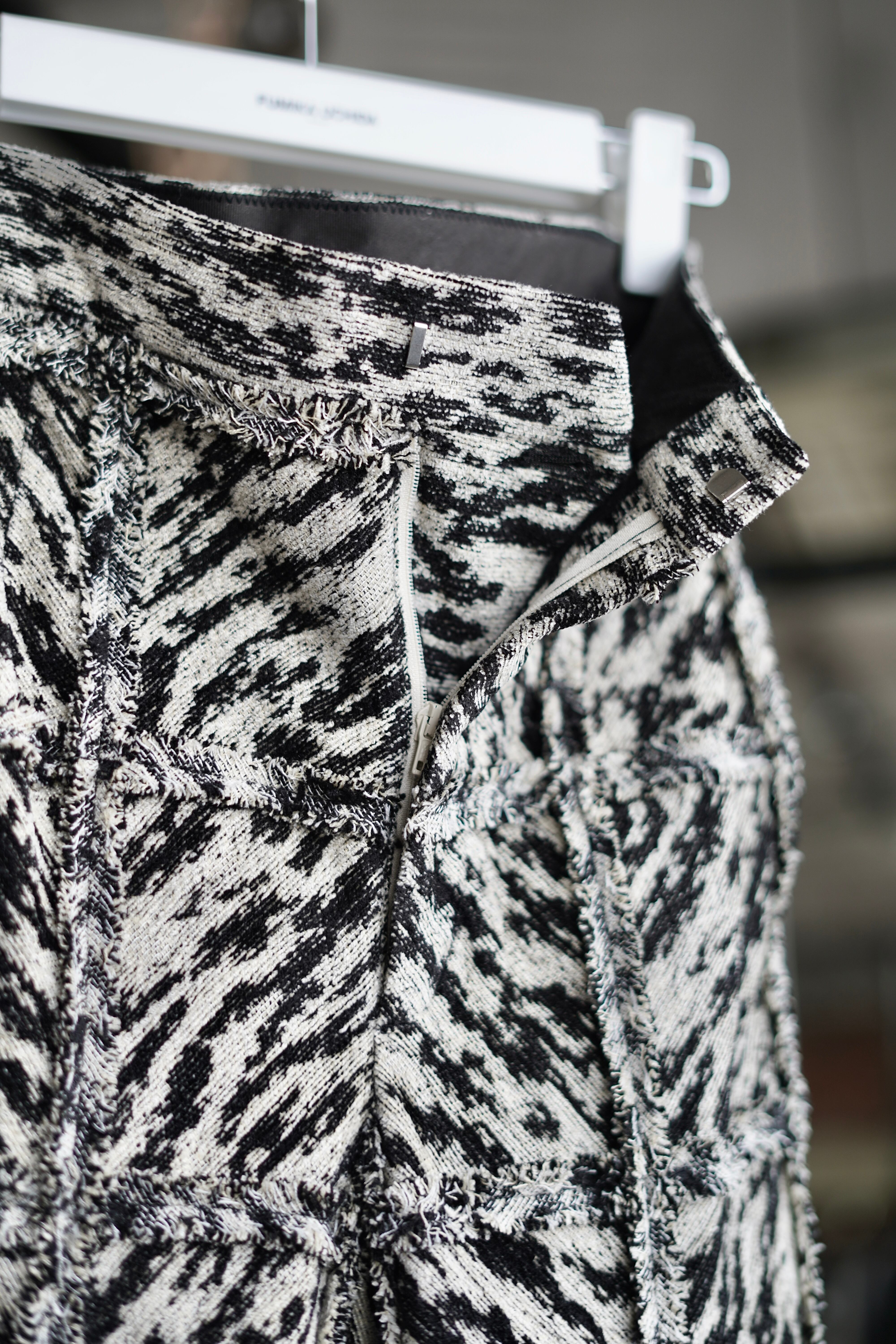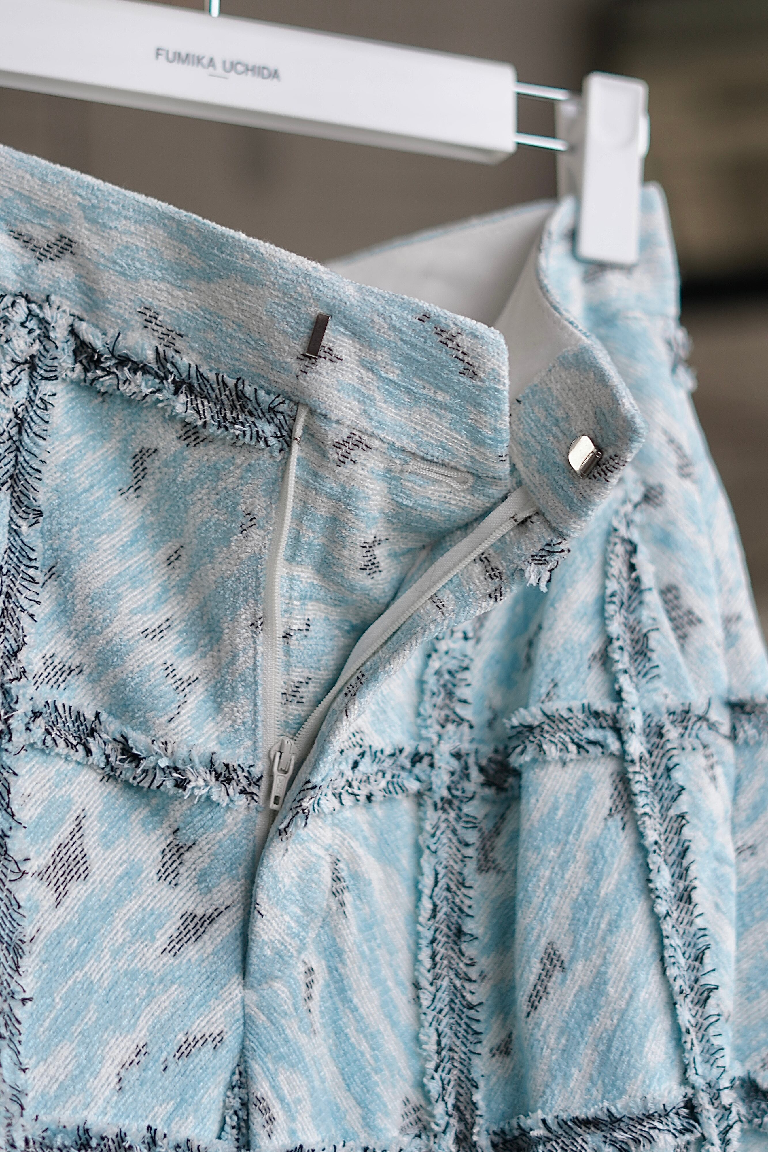 FUMIKA_UCHIDA / PATCHWORK ZEBRA FLARE PANTS (AQUABLUE , BLACK)