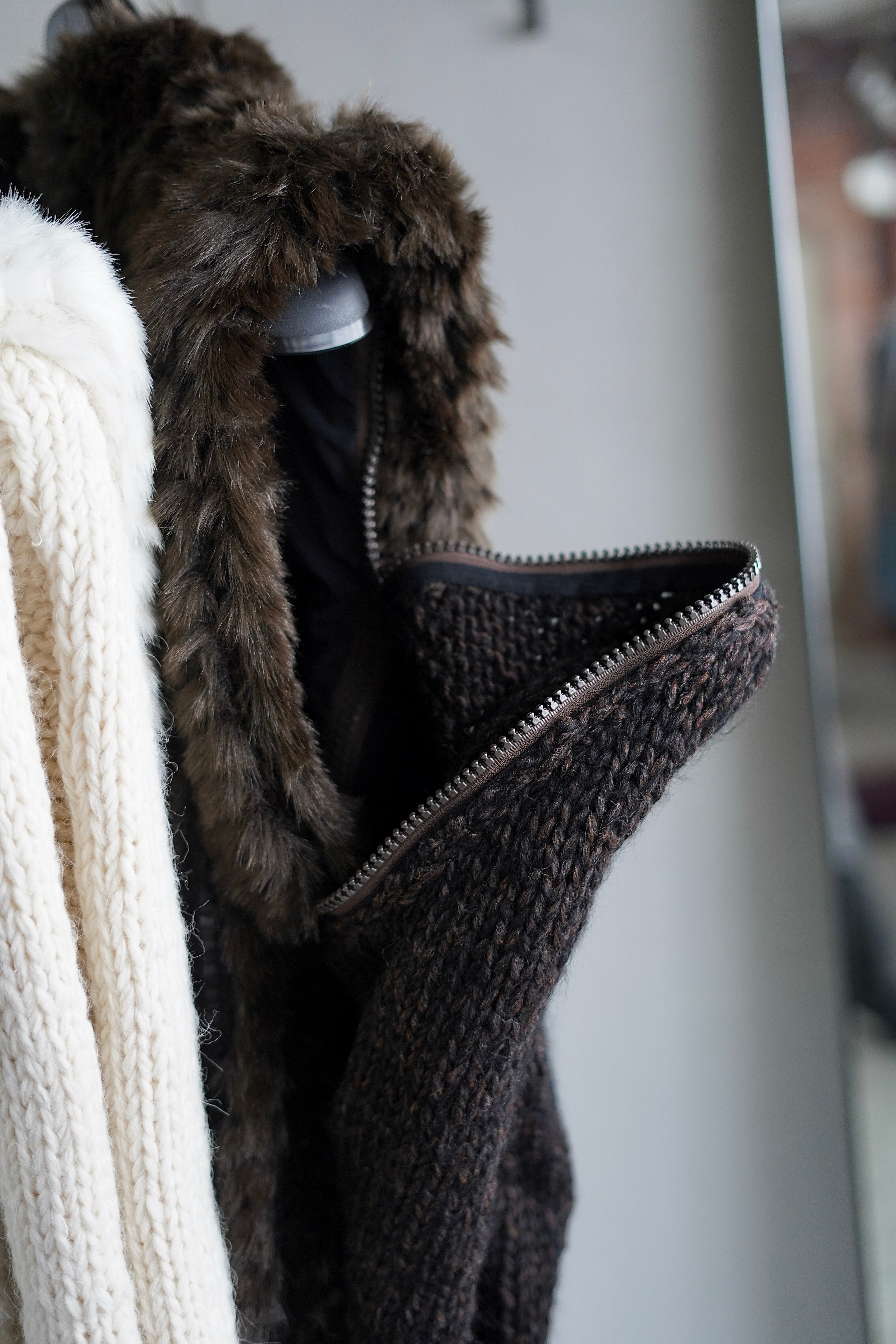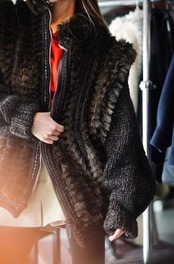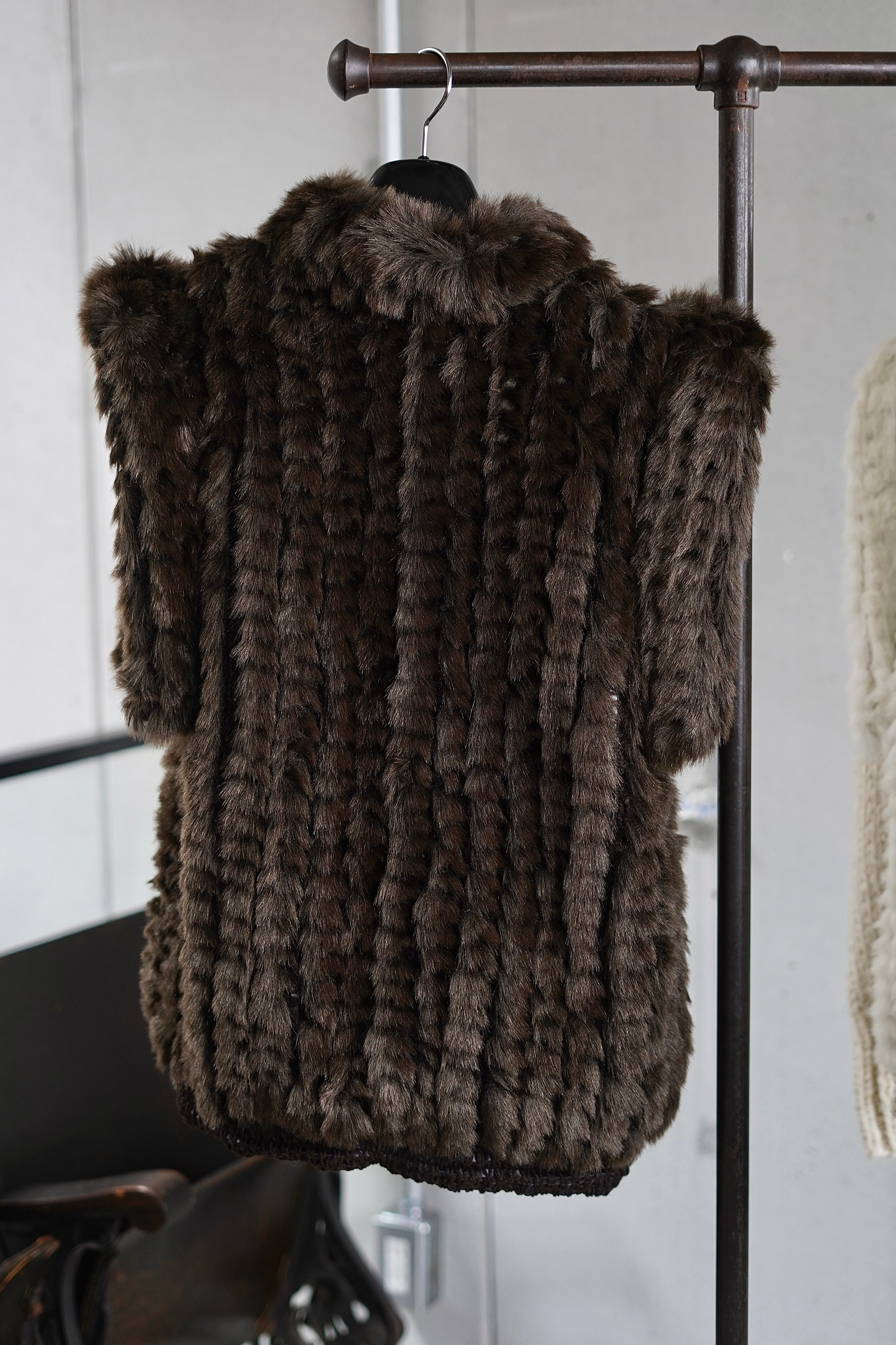 Item name / FAUX FUR HAND KINTTED ZIP-UP JACKET_REMOVABLE SLEEVES