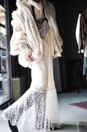 FUMIKA_UCHIDA / FAUX FUR HAND KINTTED ZIP-UP JACKET_REMOVABLE SLEEVES (IVORY , BROWN)