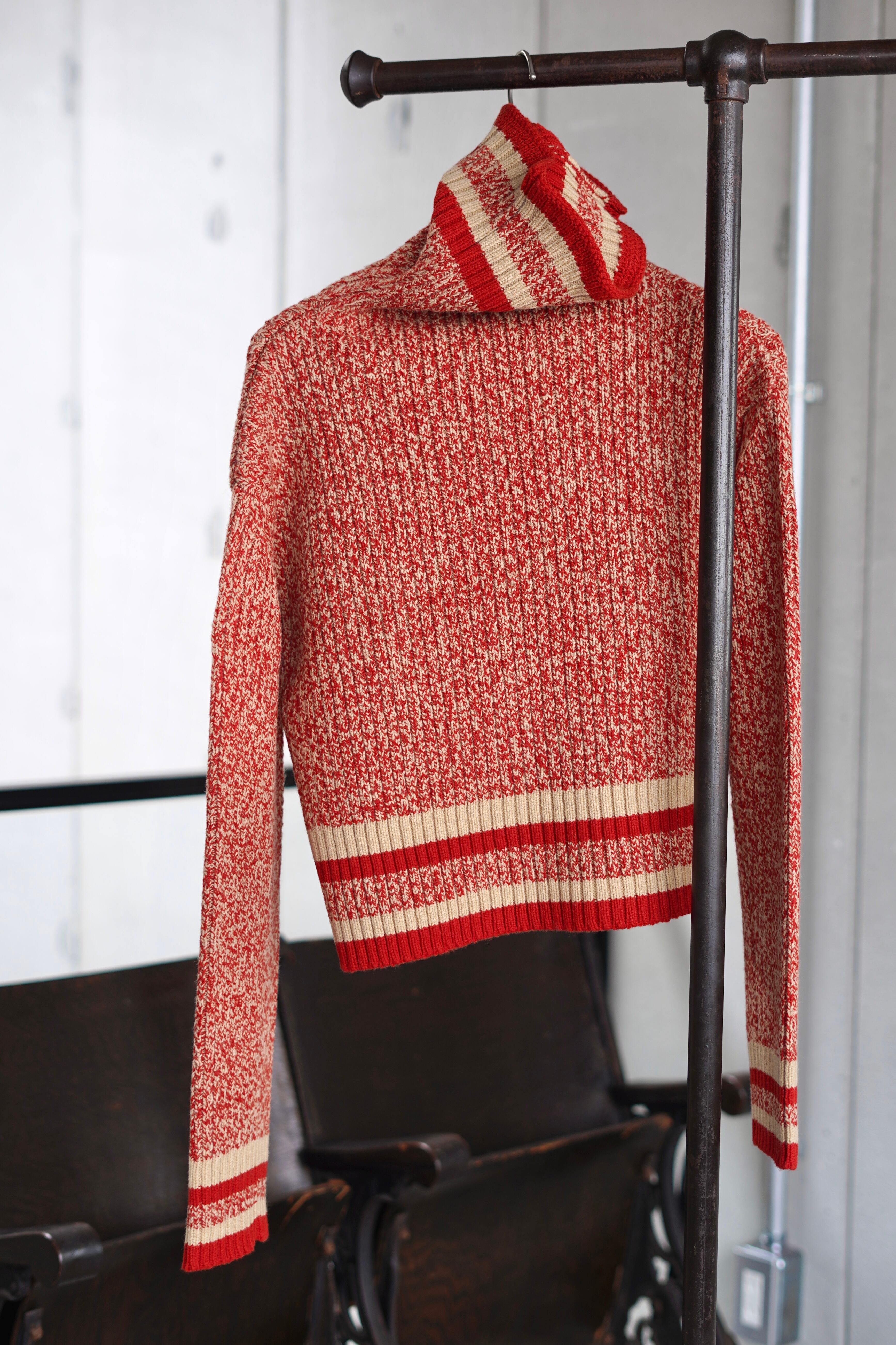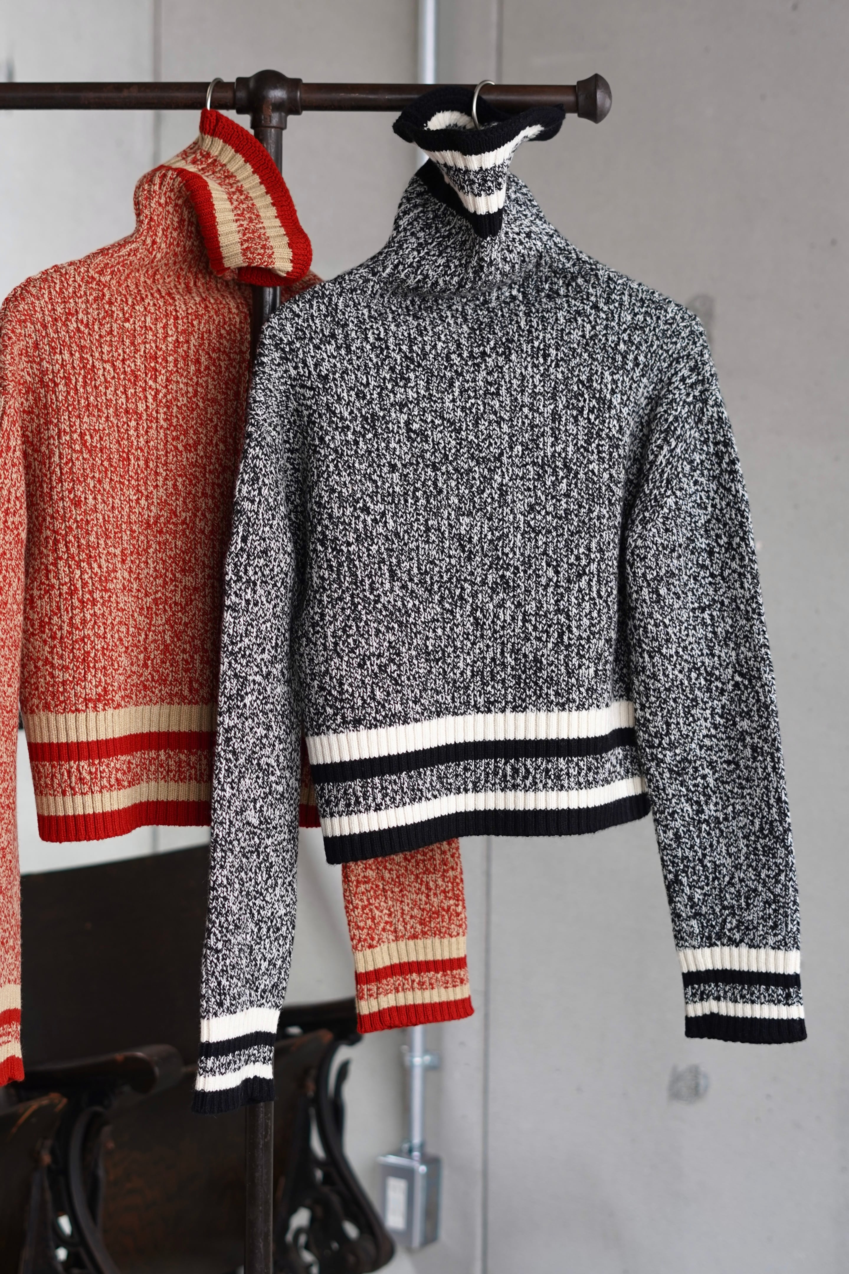 FUMIKA_UCHIDA / LINED HIGH-NECK SWEATER (WHITE×BLACK, RED×BEIGE)