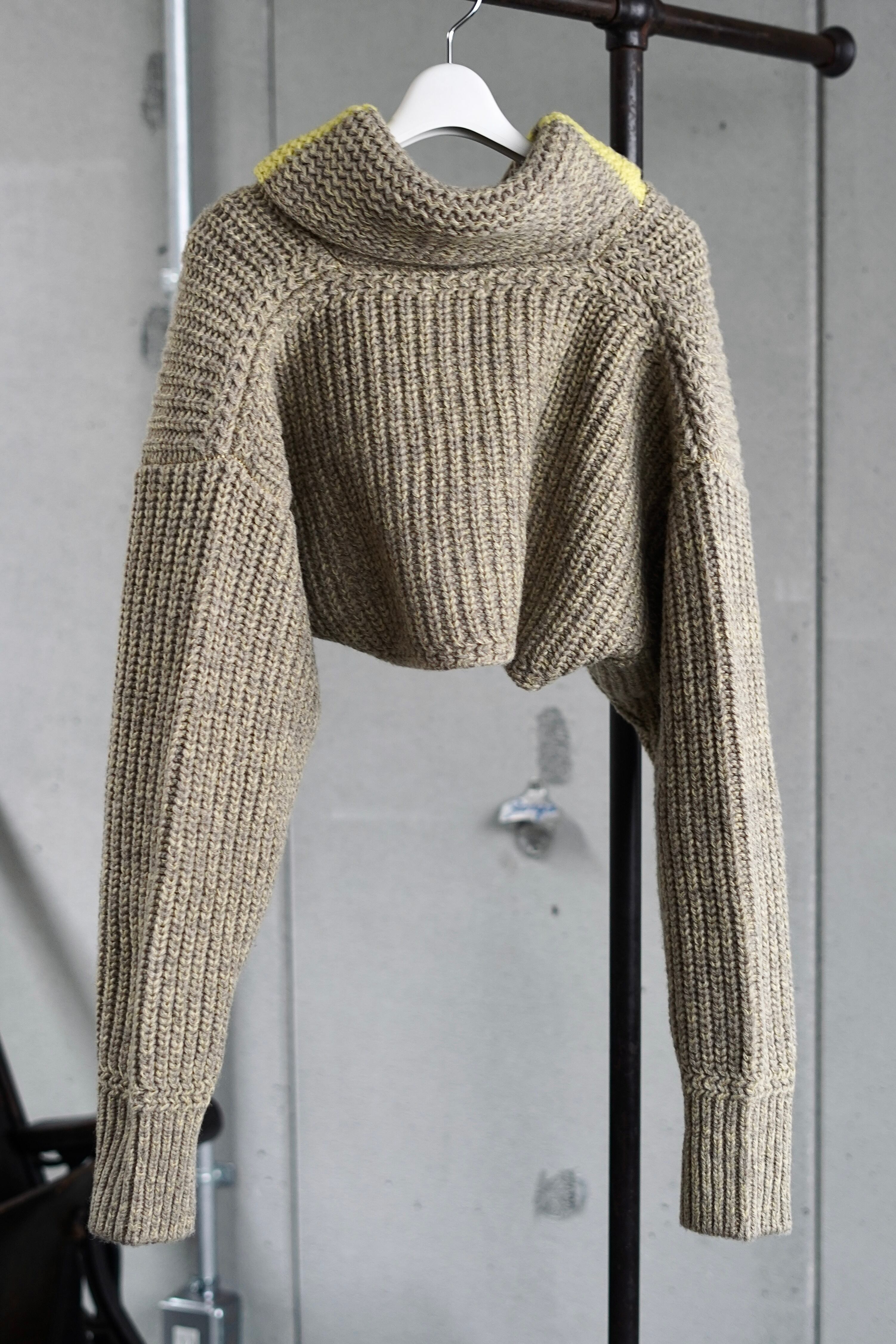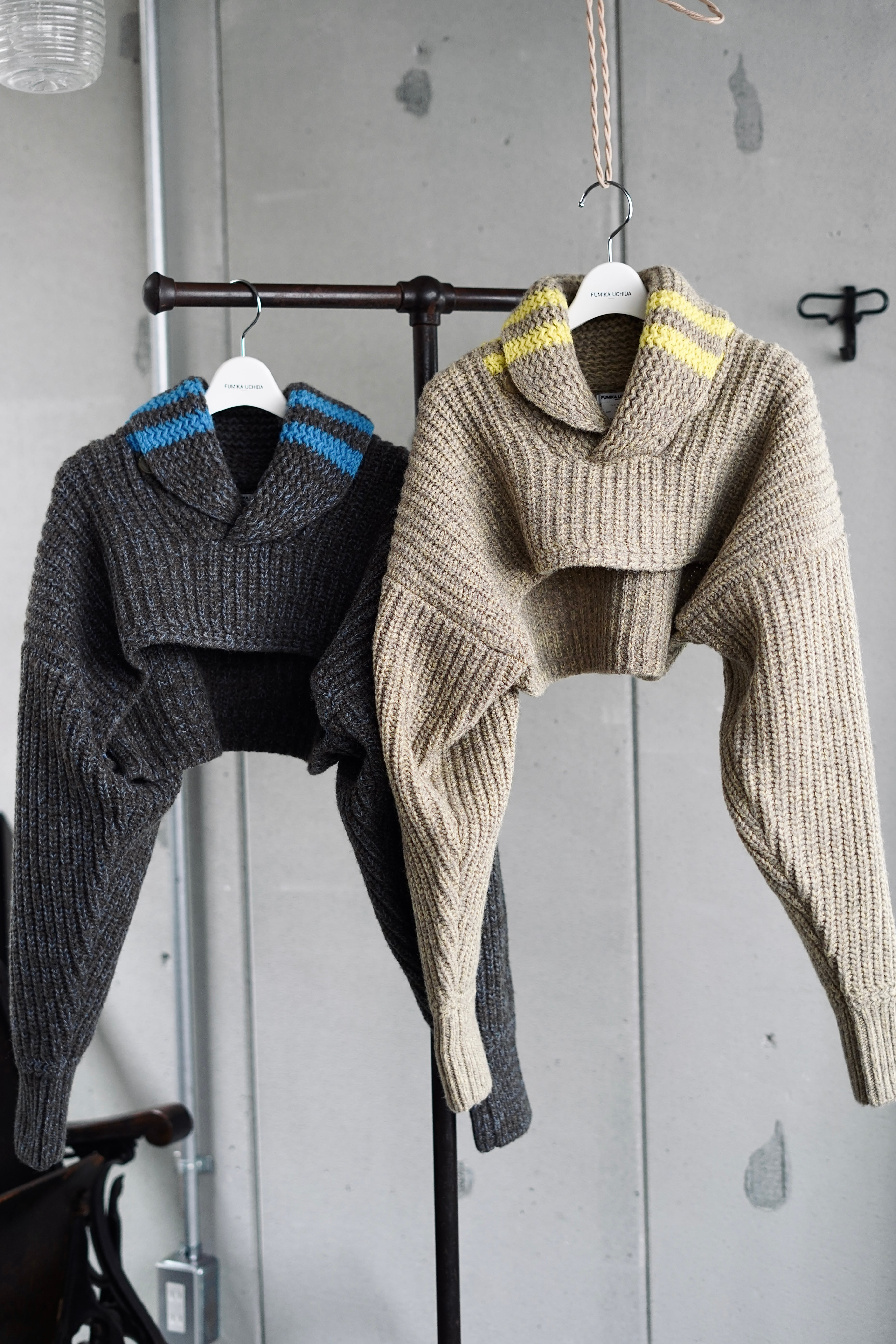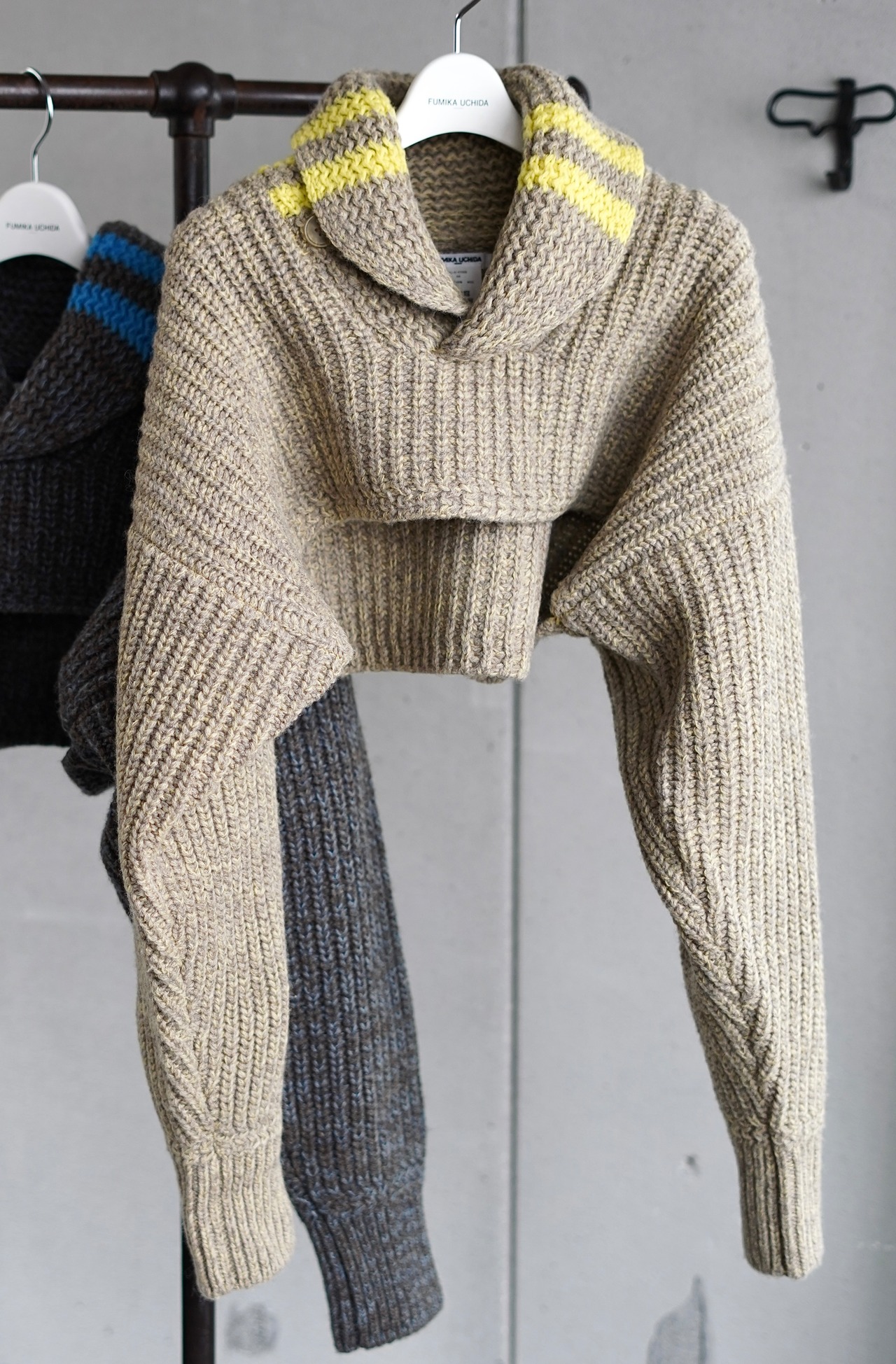 FUMIKA_UCHIDA / 3Mix Shetland /SHAWL-COLLAR SLEEVE SWEATER (YELBEG/BANANA , CHLKHAKI/GUM)