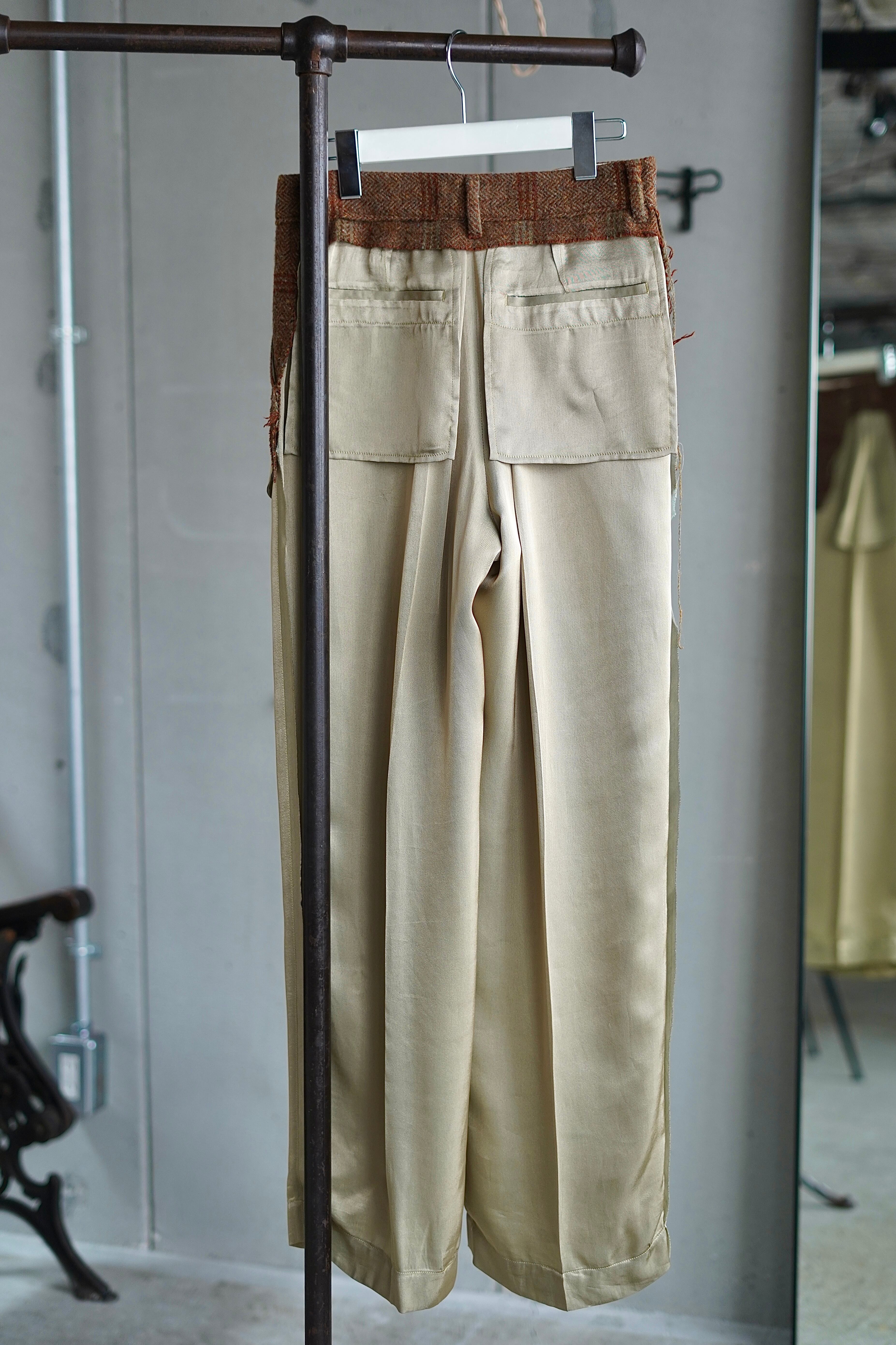 FUMIKA_UCHIDA / Plaid NepTweed・Satin/ CUT-OUT SLACKS (SAND×BRICK/BLUERUST satin , OLIVBRN×CHARCOAL/AVOCADO satin)
