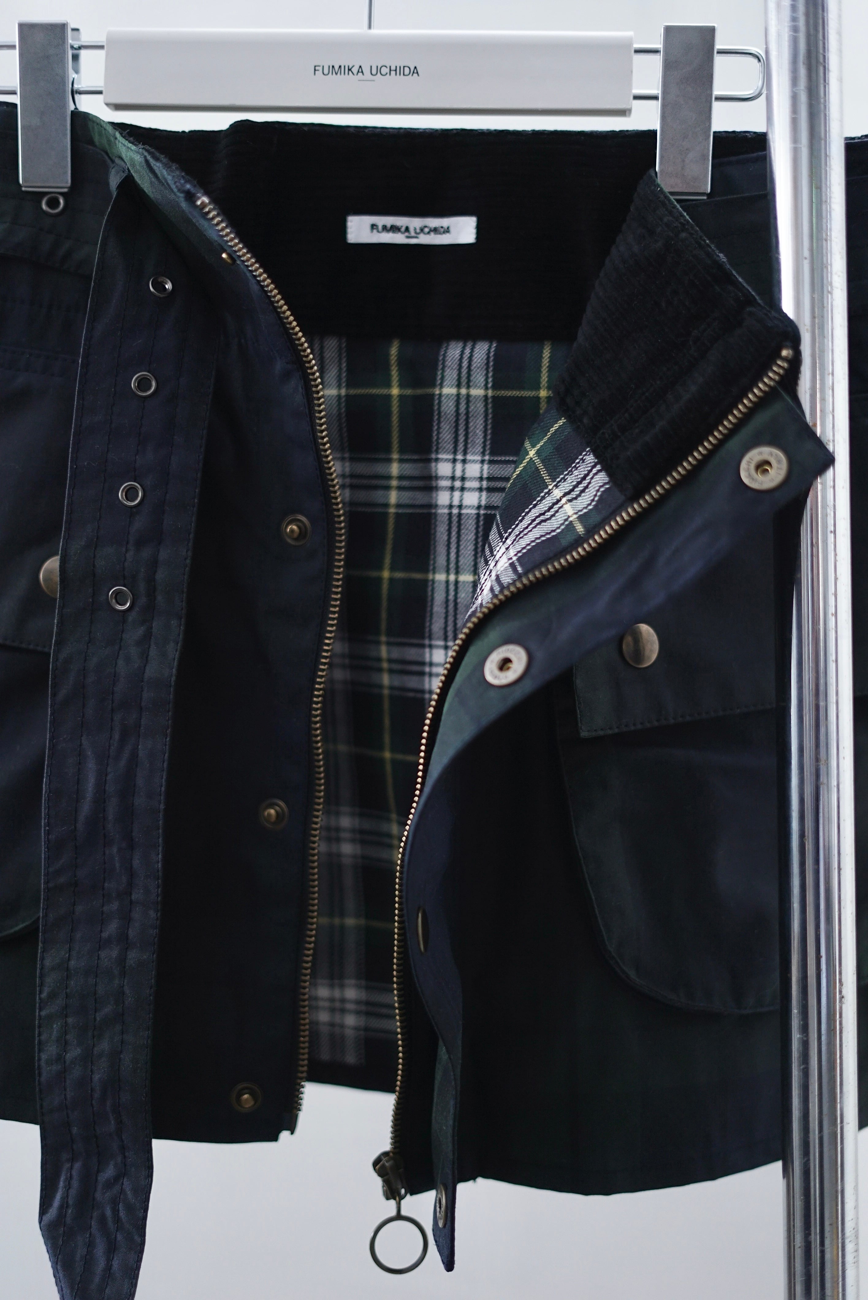 FUMIKA_UCHIDA / OILED TARTAN PLAID BELT SKIRT (DARK NAVY)