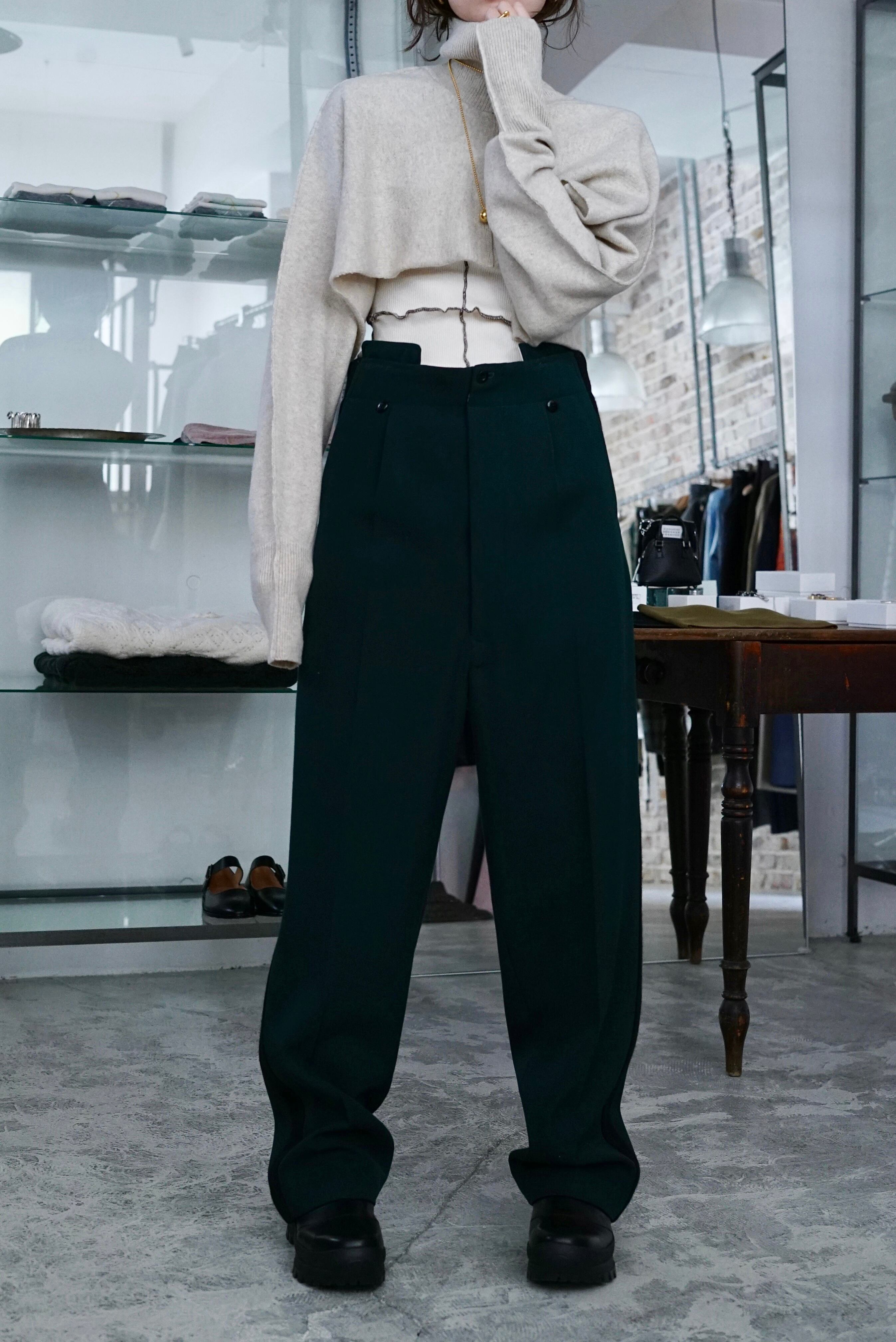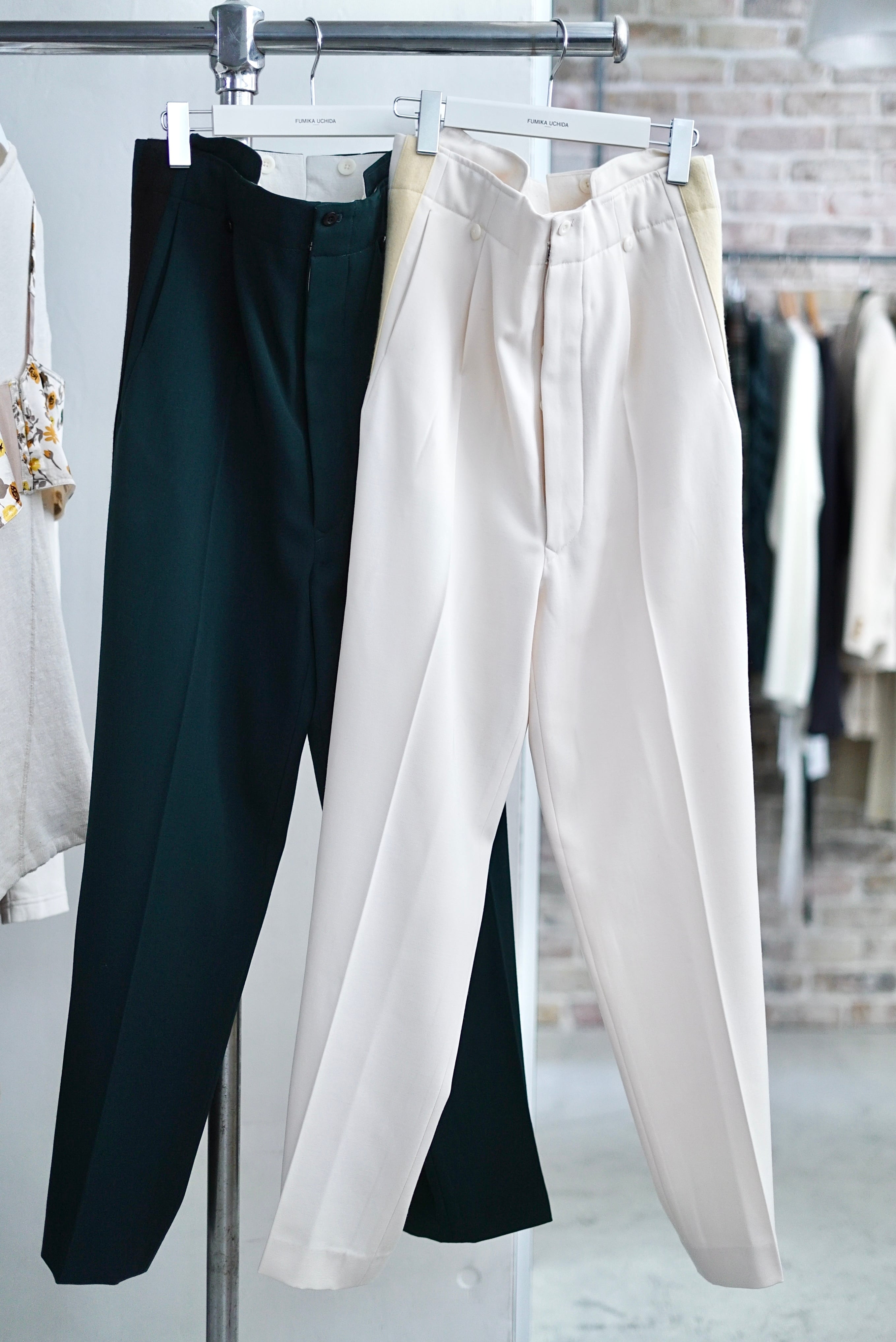 FUMIKA_UCHIDA / HIGH-WAIST BAND PANTS (IVORY/YEL , BRITISHGREEN/BLK)