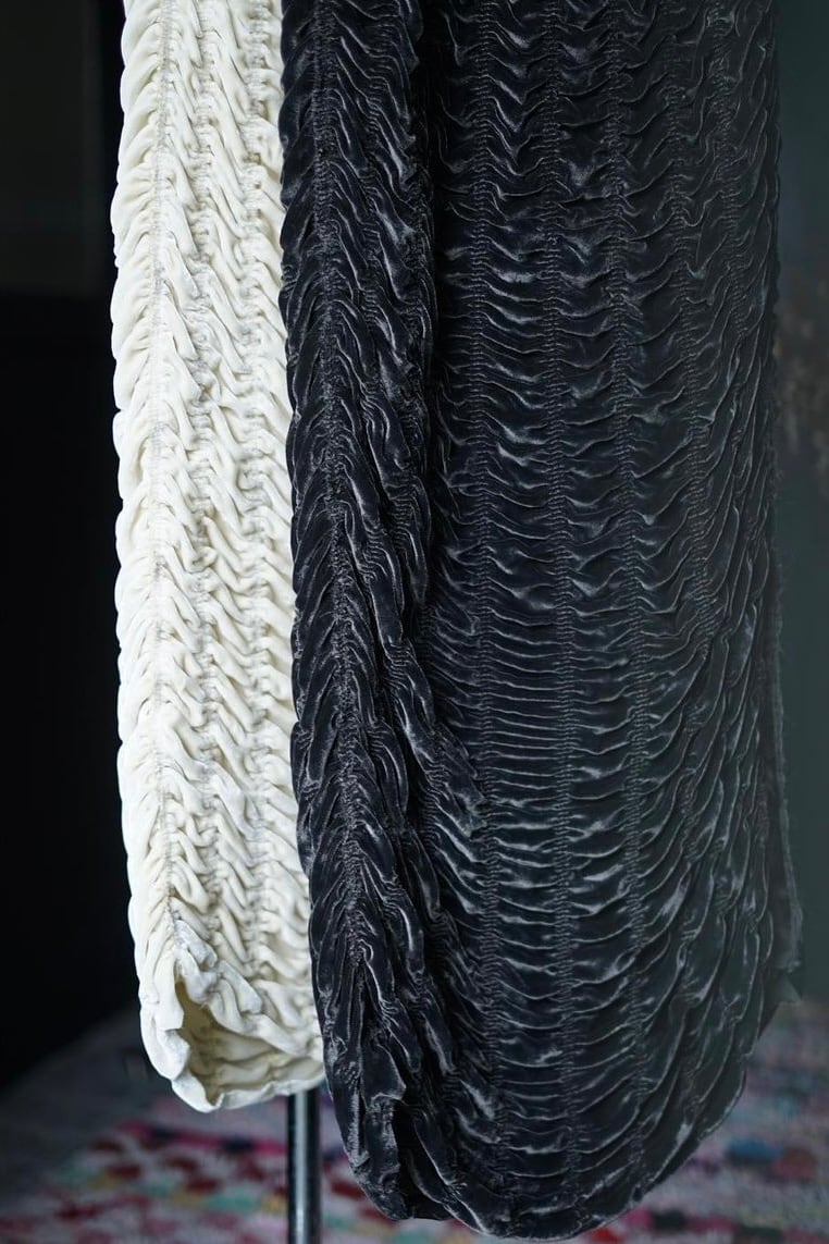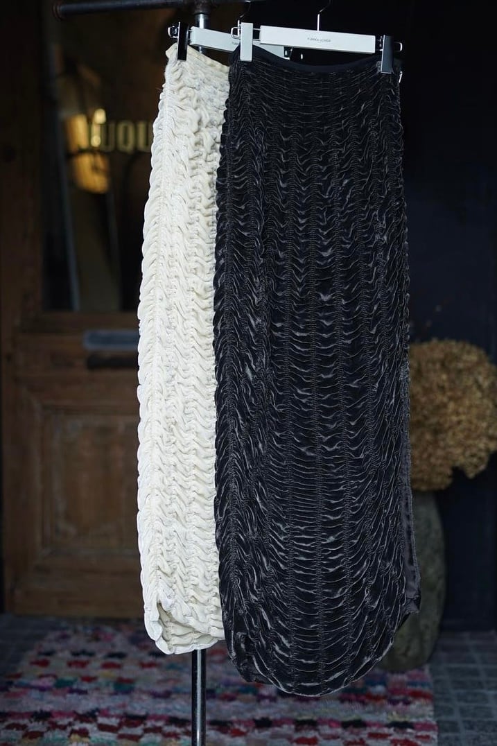 FUMIKA_UCHIDA / SilkRayonVelvet/ GATHERED SKIRT (GOOSEGREY , VANILLA)
