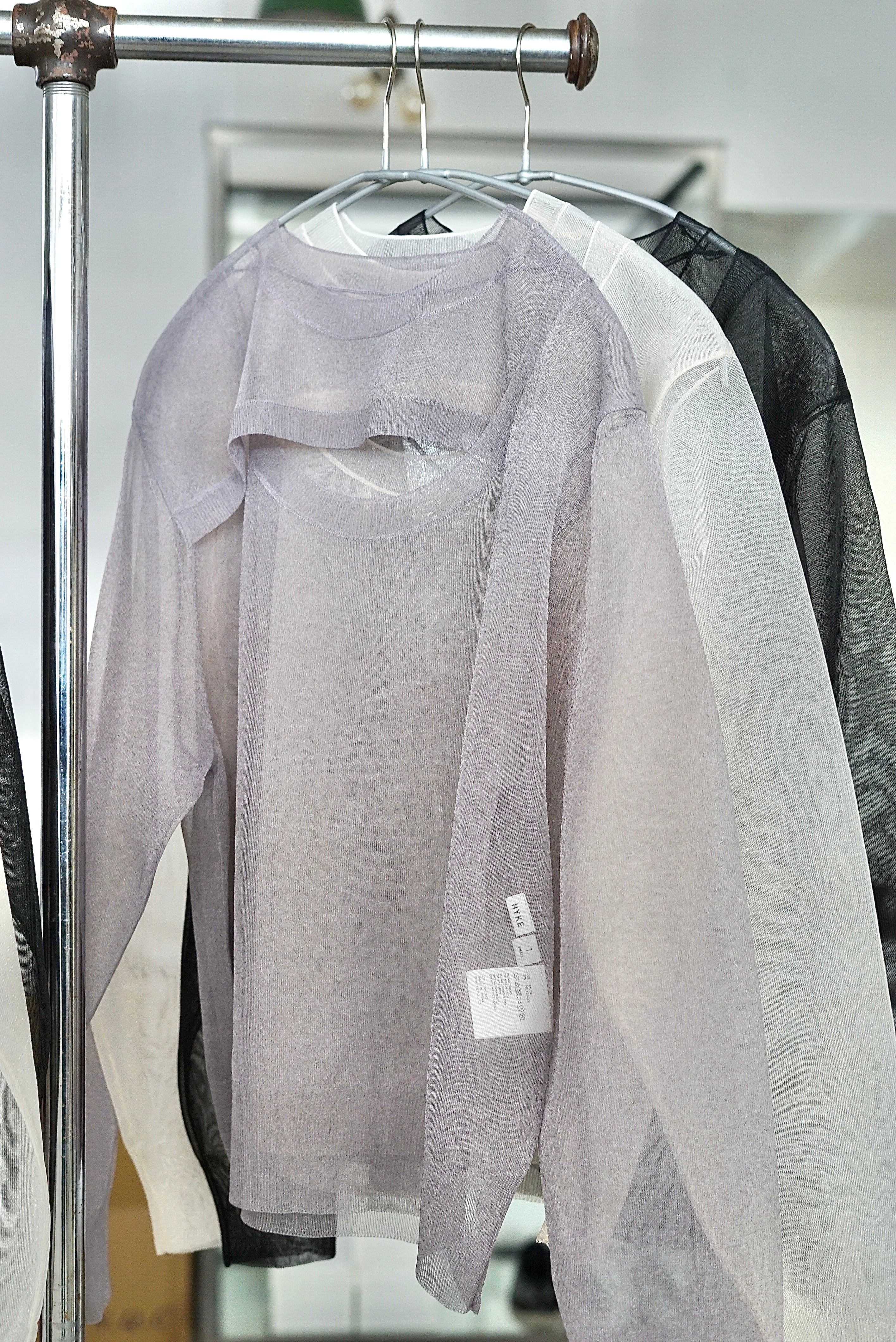 HYKE / SHEER CREW NECK SWEATER ( BLACK ,CREAM ,LIGHT PURPLE )