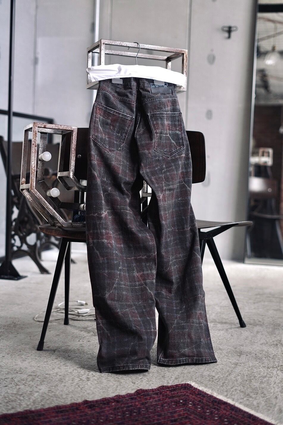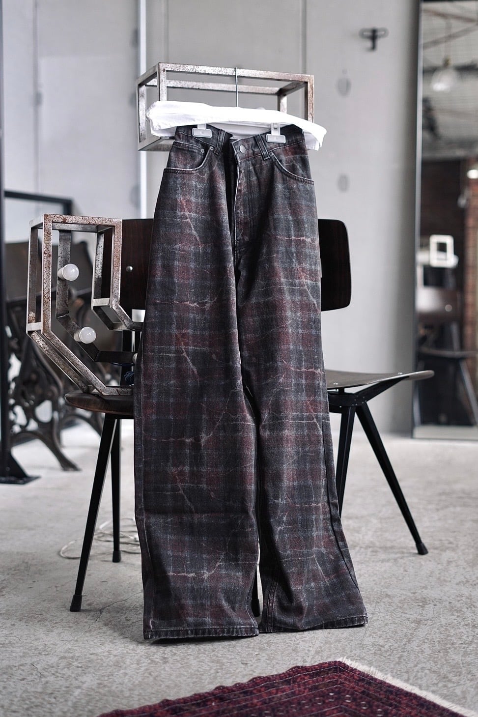 FUCKINGAWESOME / Distressed Plaid Fecke Jeans (Maroon/Plaid)