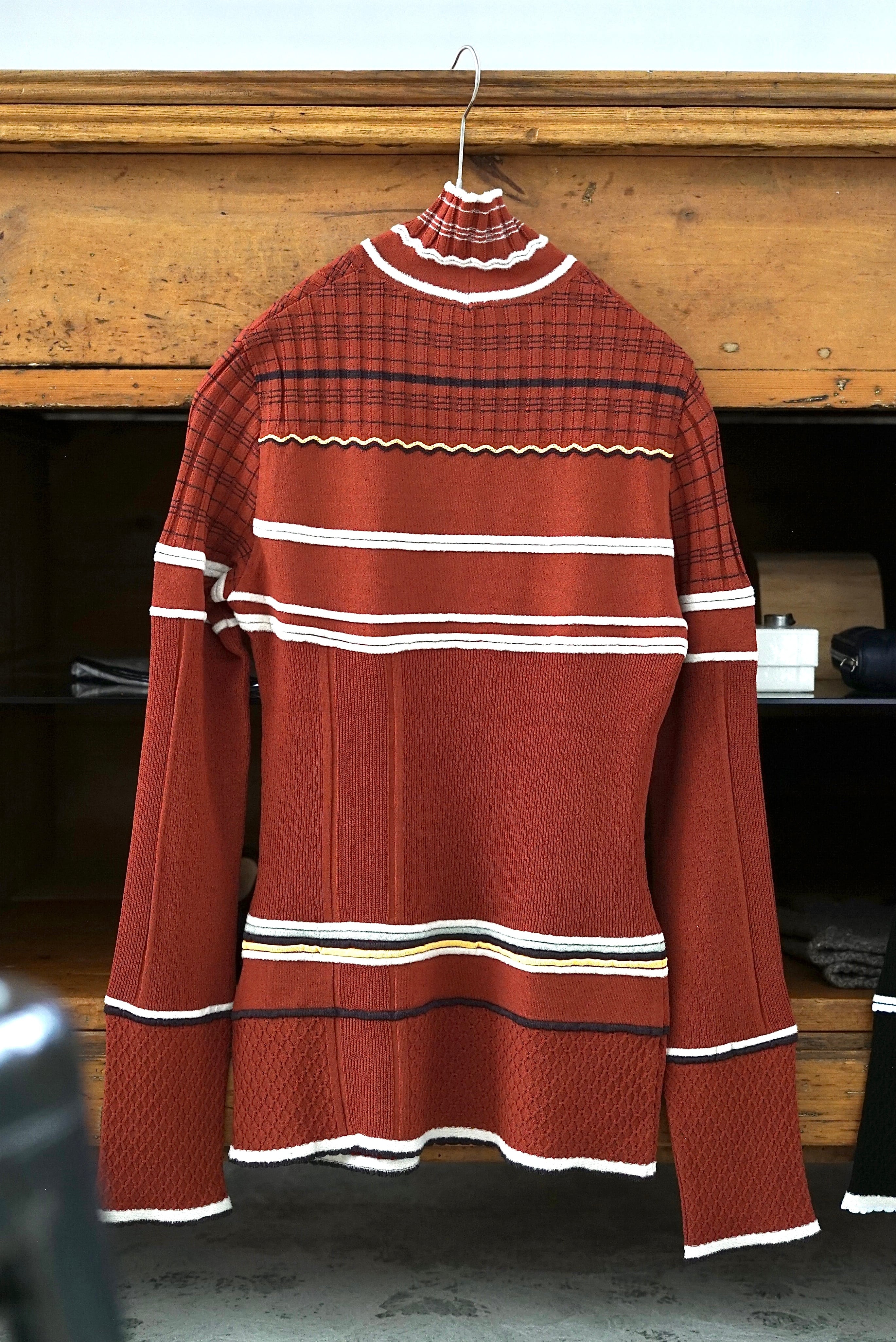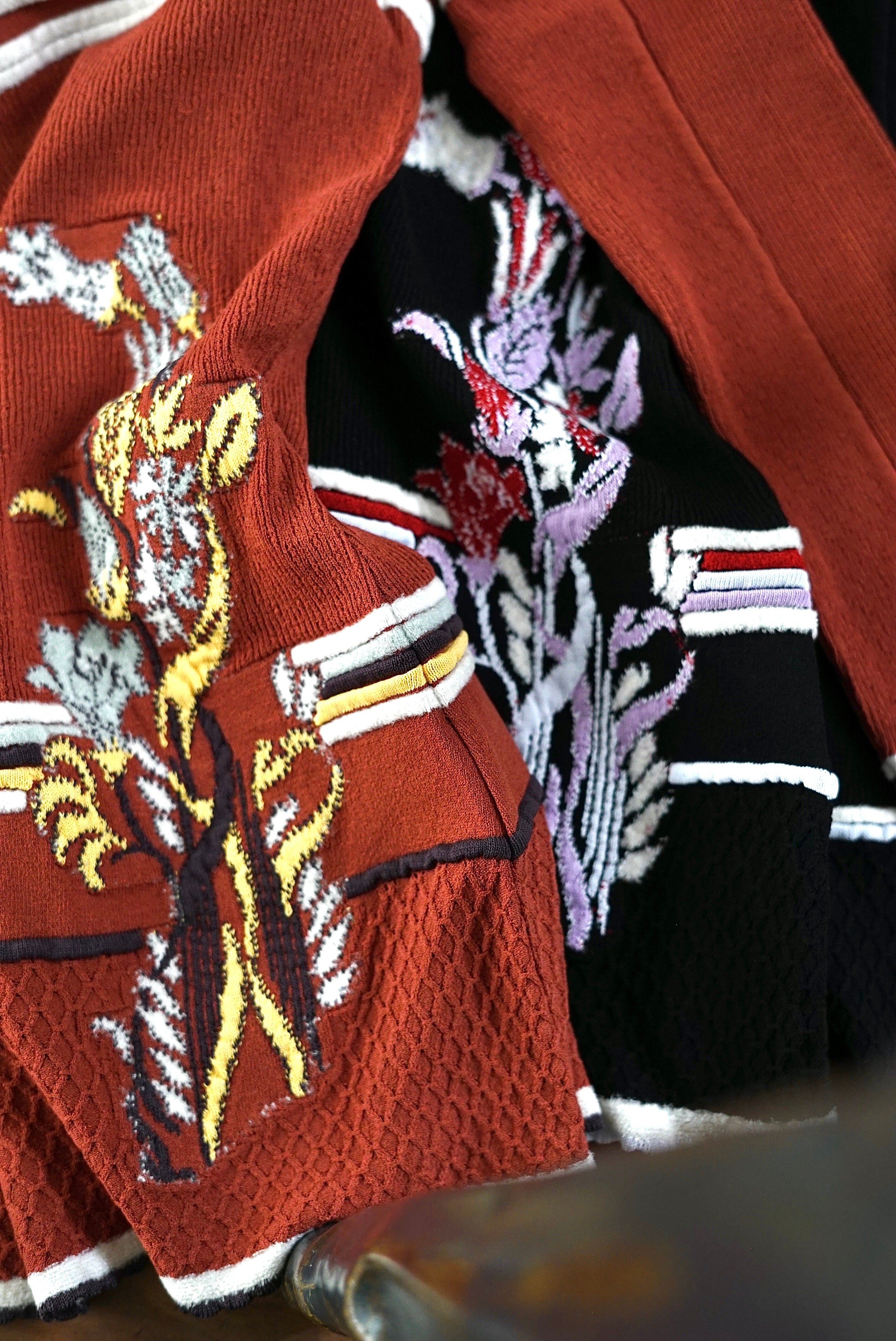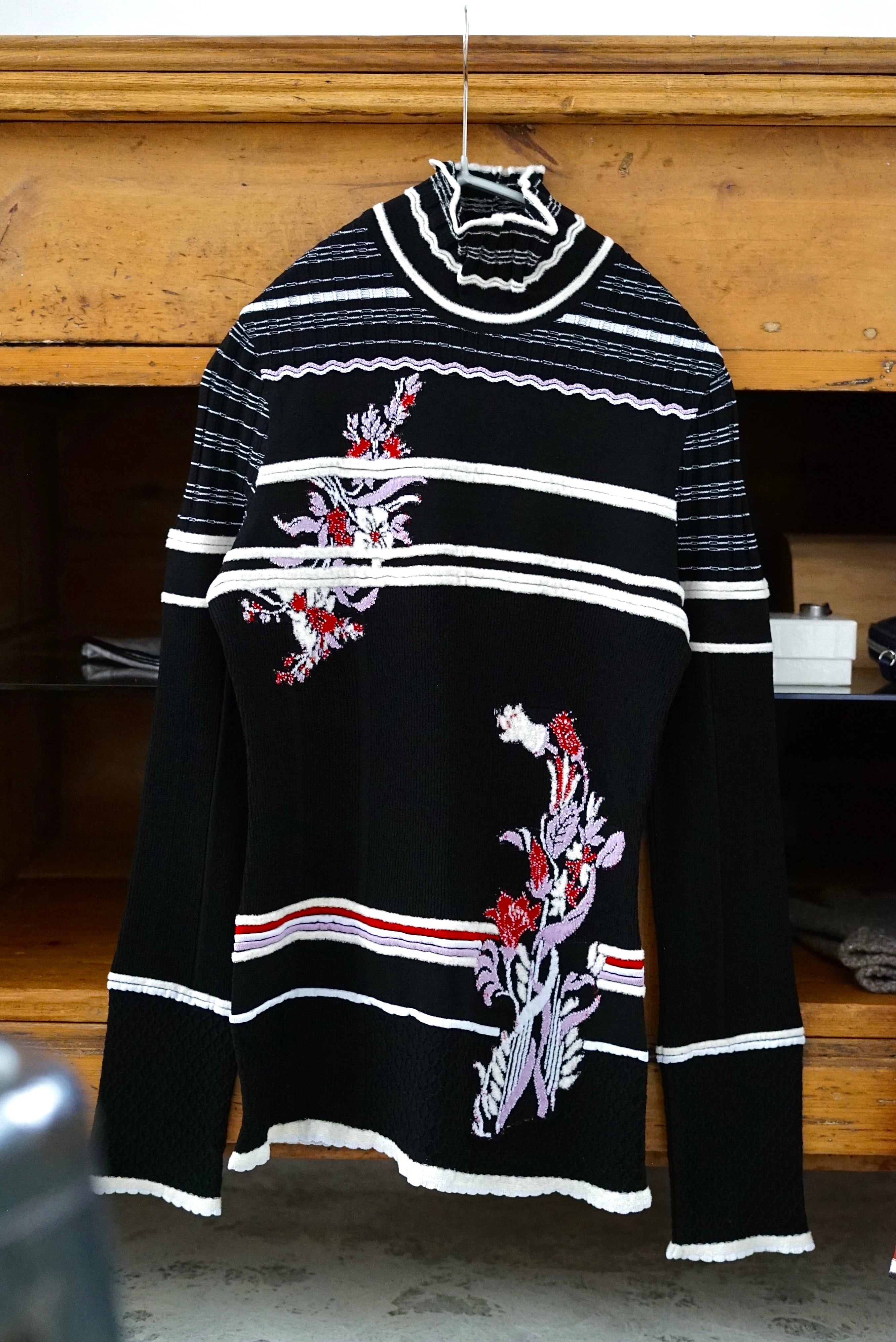 Mame Kurogouchi / Floral Motif Intarsia Knitted High Neck Top ( BLACK , VERMILLION )