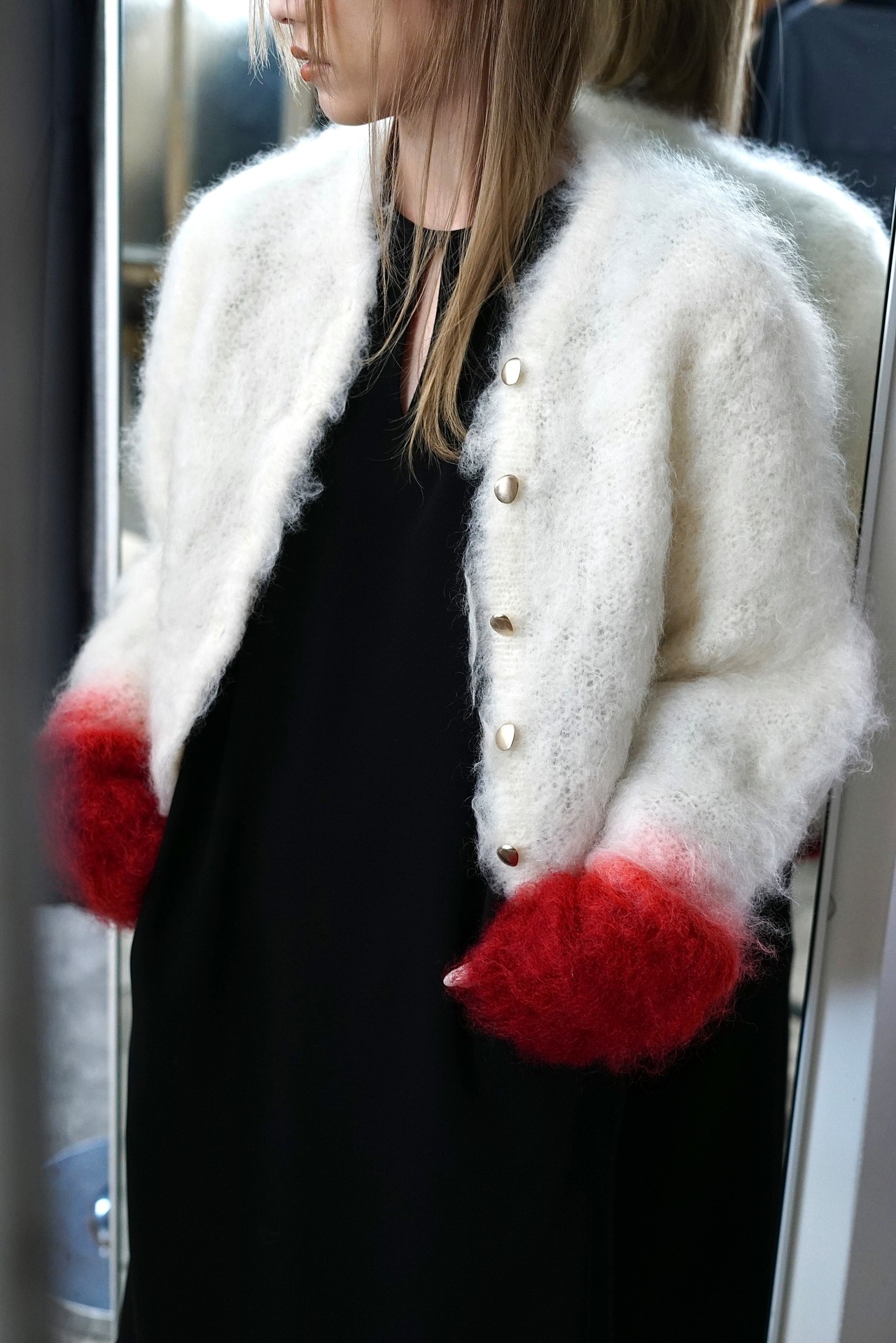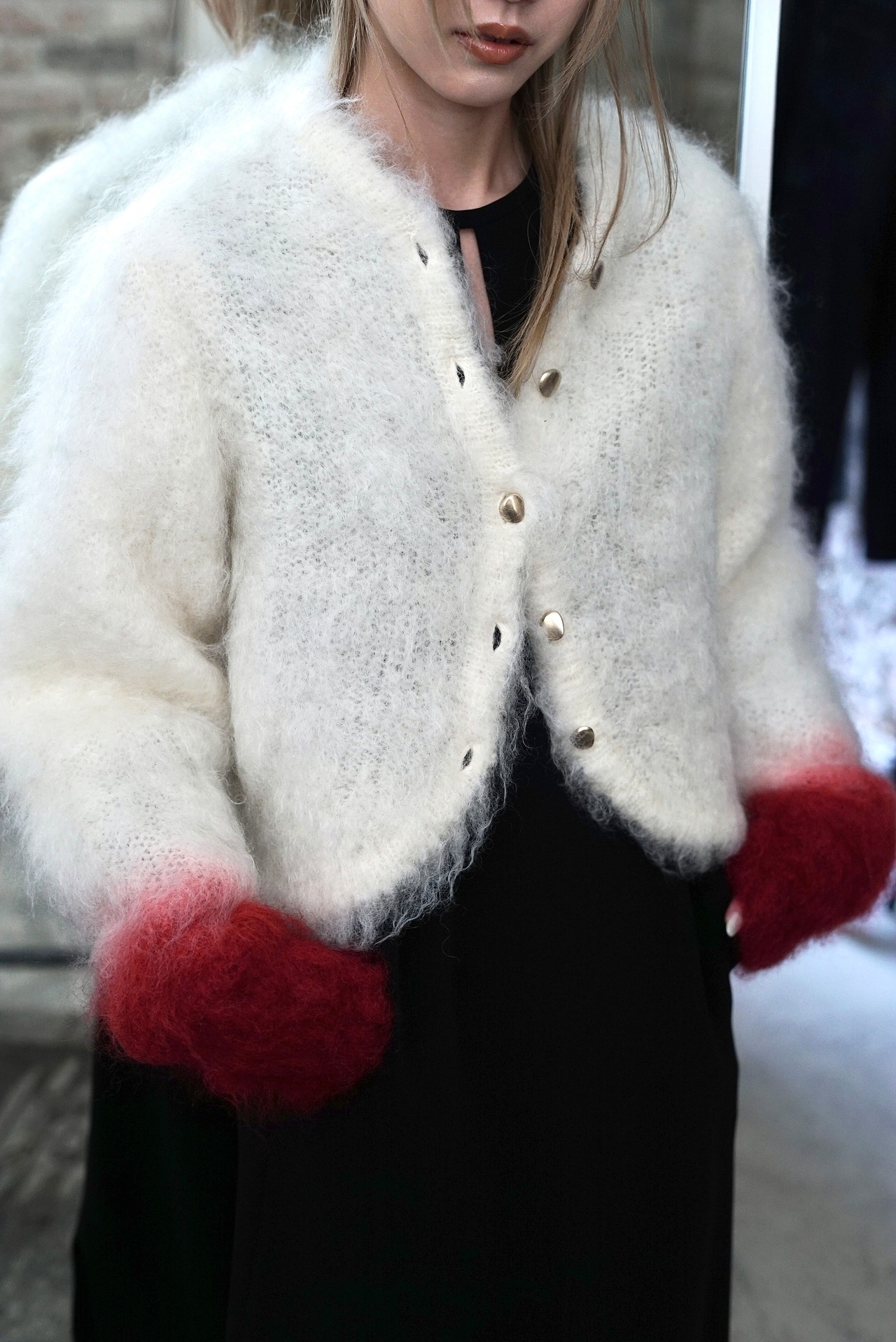 Mame Kurogouchi / Fur Knitted Cardigan ( GREY , WHITE )