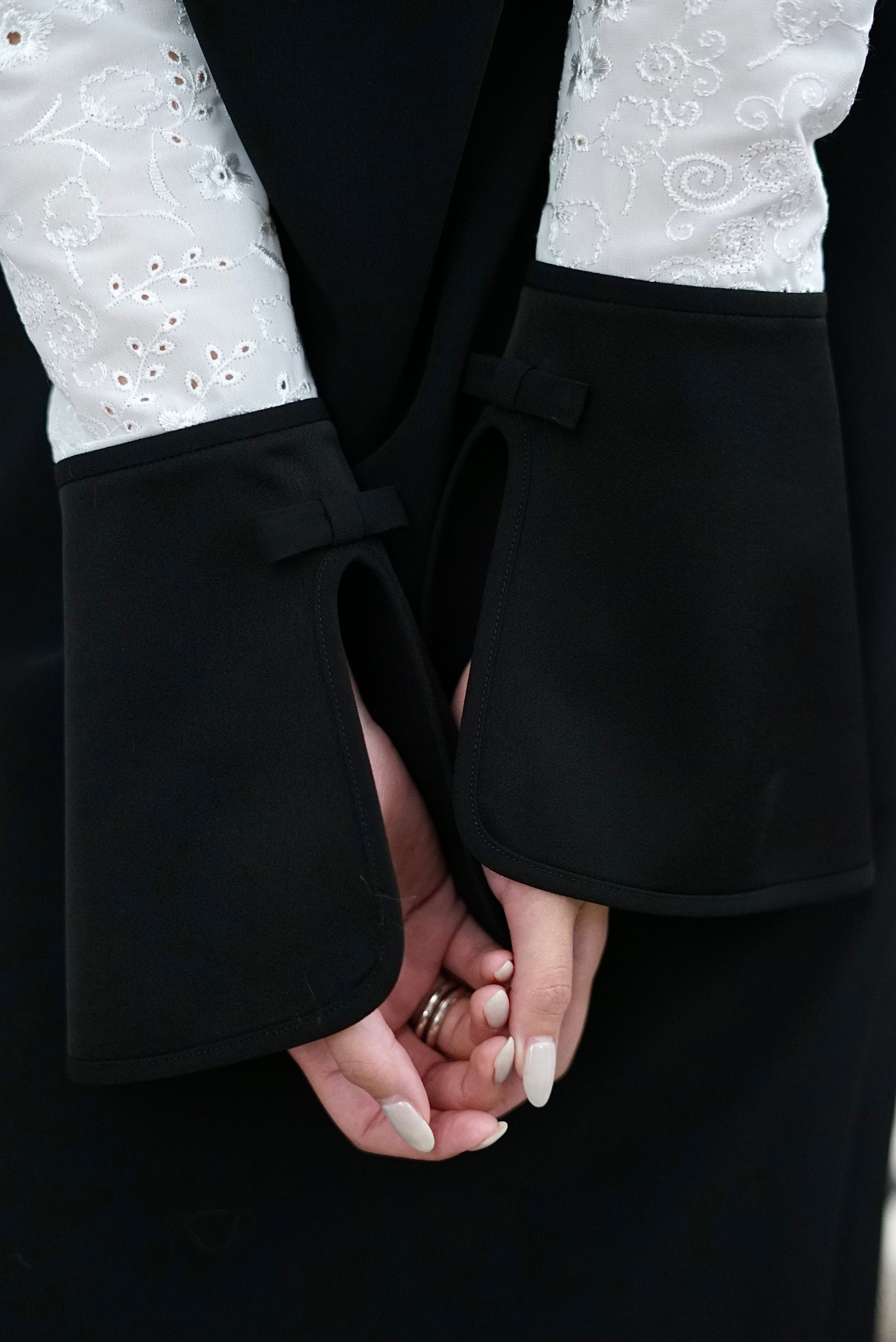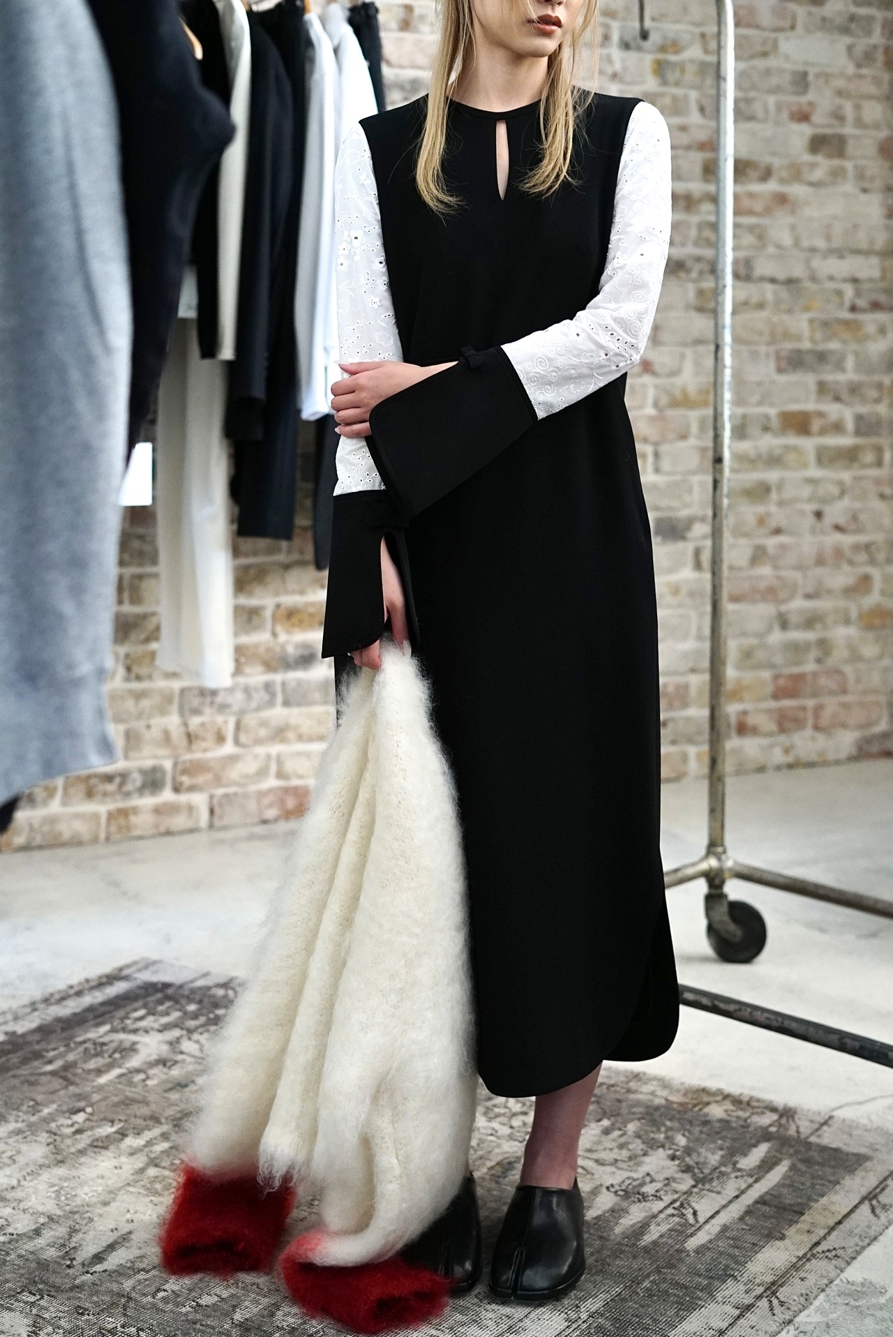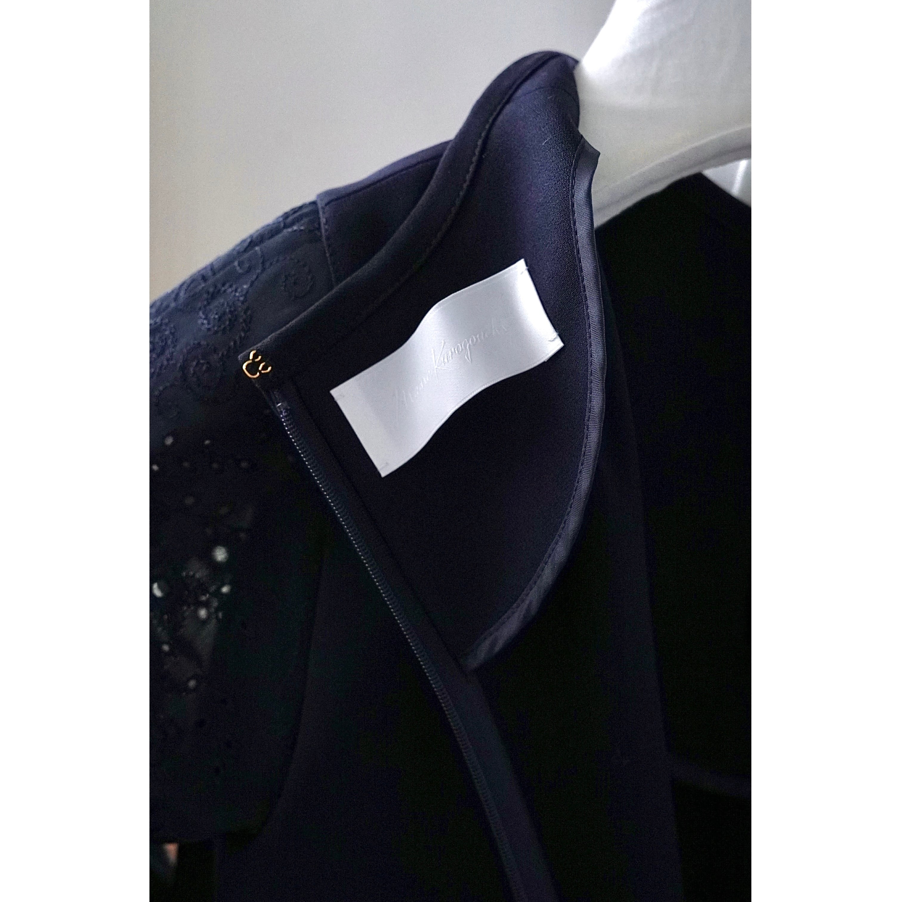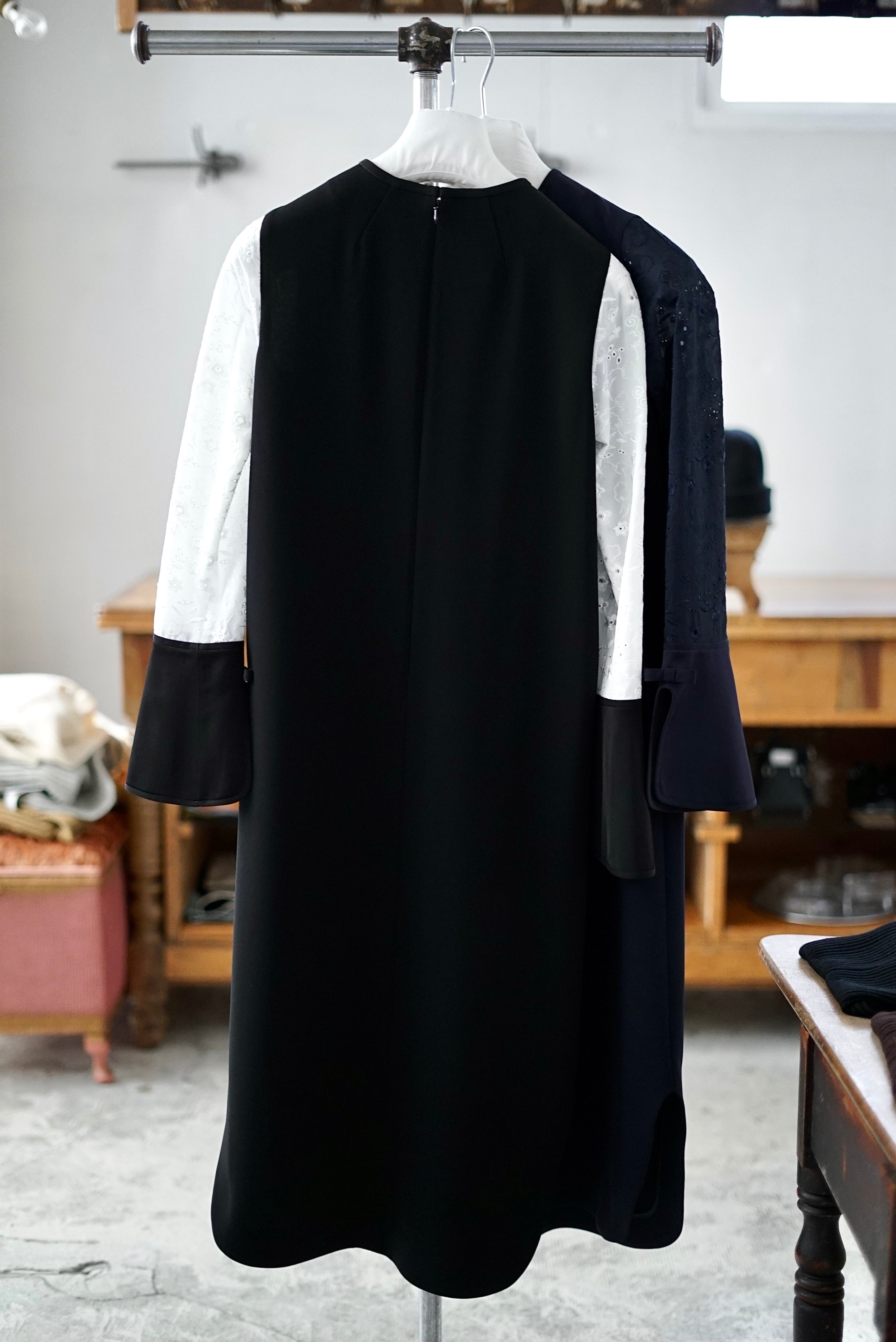 Mame Kurogouchi / Triacetate Georgette Floral Embroidery Sleeve Classic Dress( BLACK , NAVY )